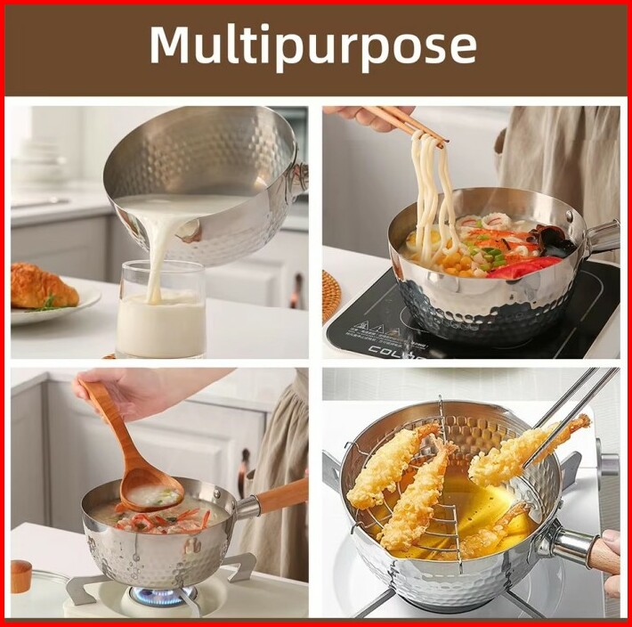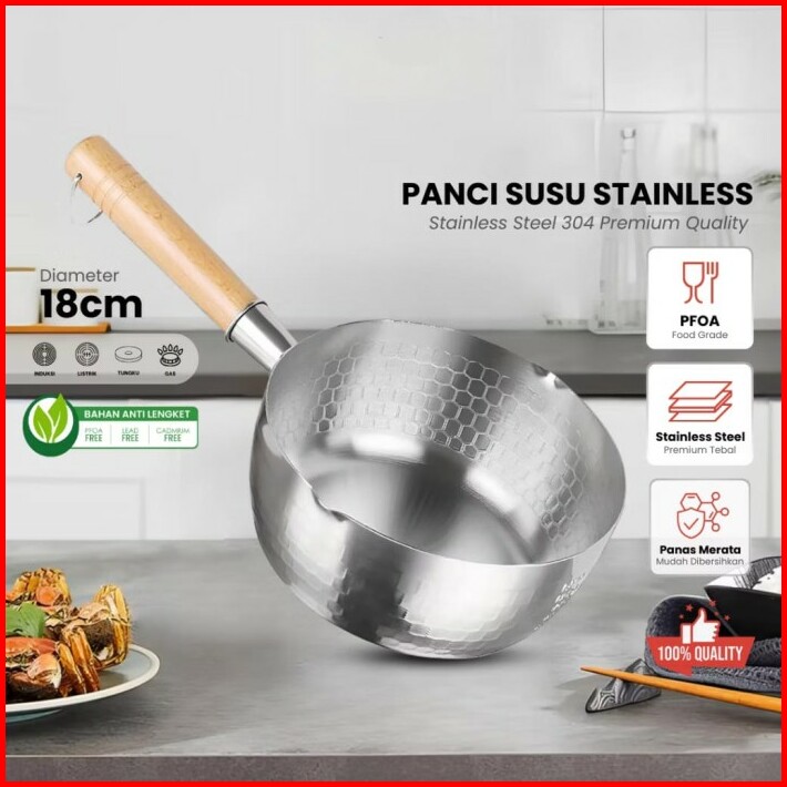 Panci Susu Stainless Steel Gagang Kayu Anti Karat Milk Pot Panci Mie Rebus Anti Lengket Bahan Tebal