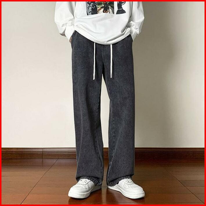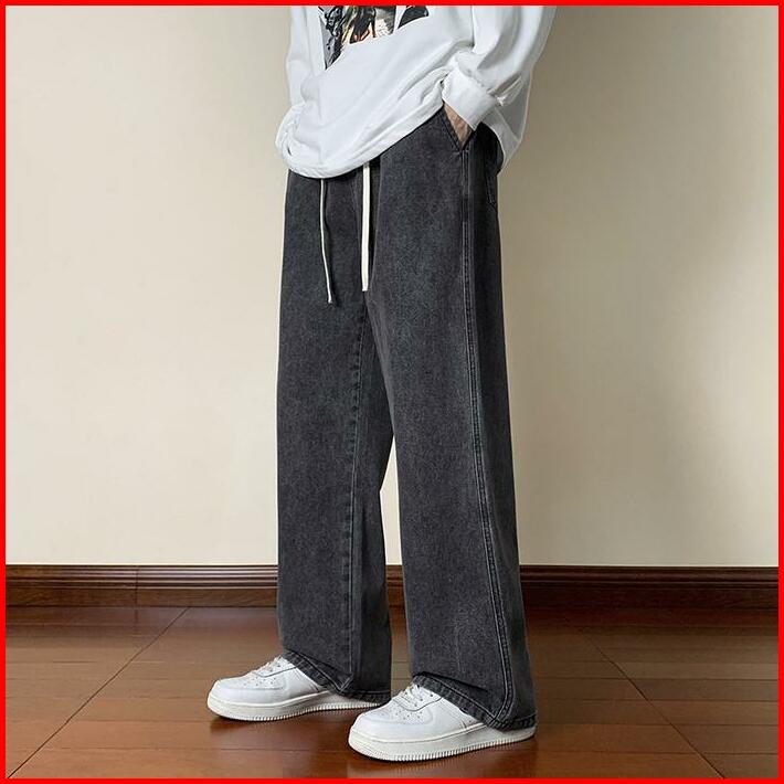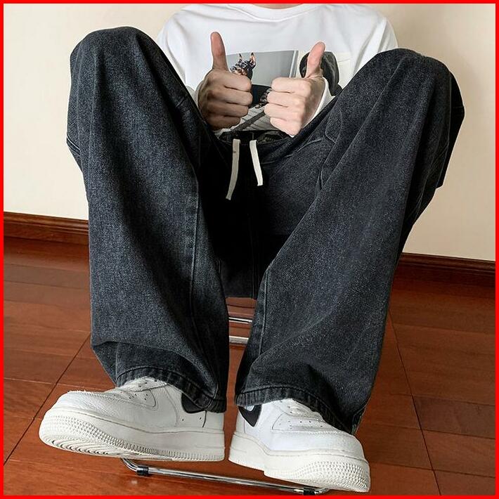 Celana Jeans Pria Elastis Celana Gombrong Pria Celana Kulot Pria Panjang Kulot Korean Style Jnco Jeans Celana Abu-abu Hi