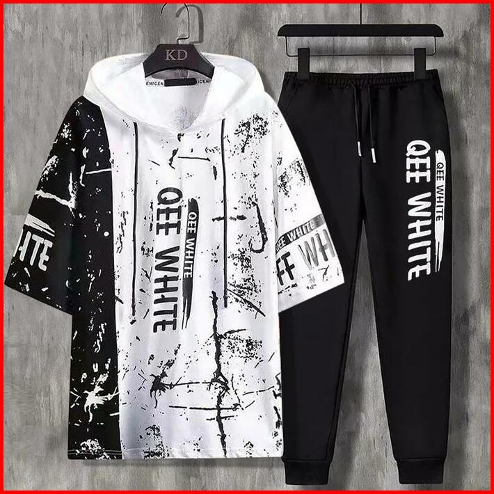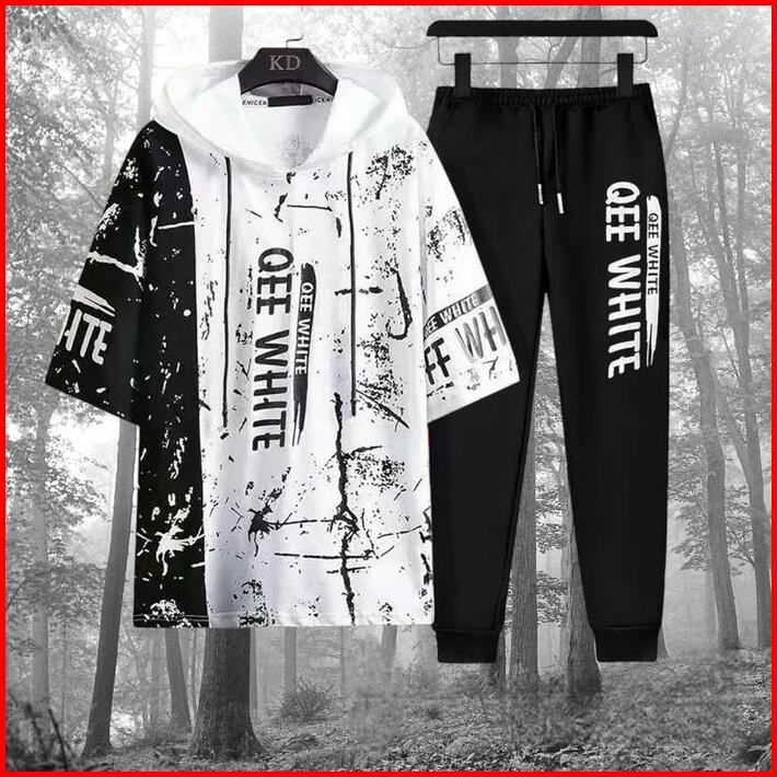 Setelan Kaos Hoodie Set Atasan Baju Dan Celana Jogger Panjang Sweater Pria Dewasa Cowok Keren Motif Casual