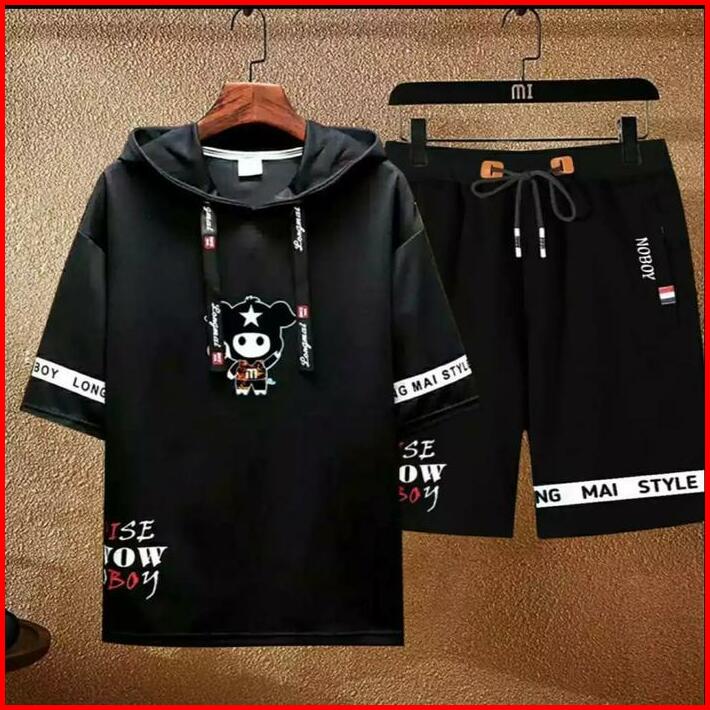 Setelan Oise Fahion Terbaru Celana Pria Hoodie Panjang Sablon Pendek Keren Distro