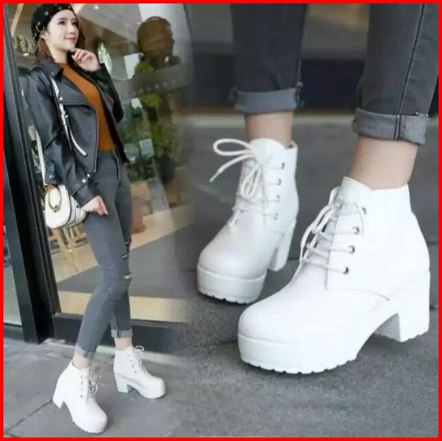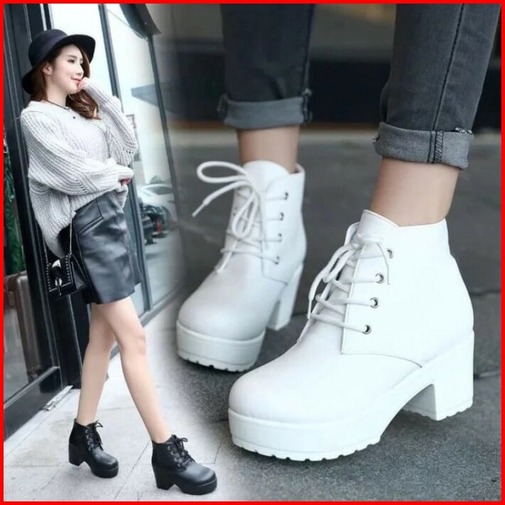 Sepatu Sneakers Boots Heels Wanita Hak 5 Cm La02 Premium Branded Fashion Korea Style Boot Pesta Formal Kondangan Kerja K