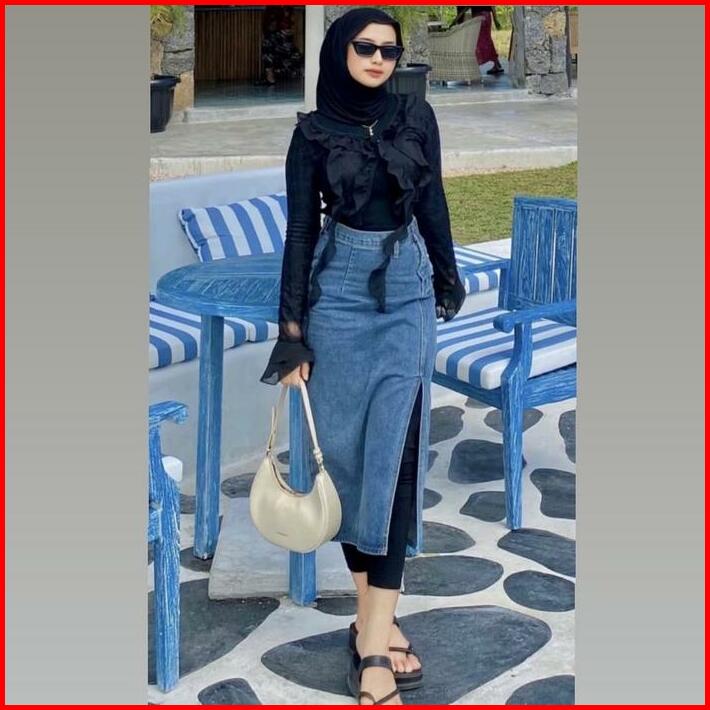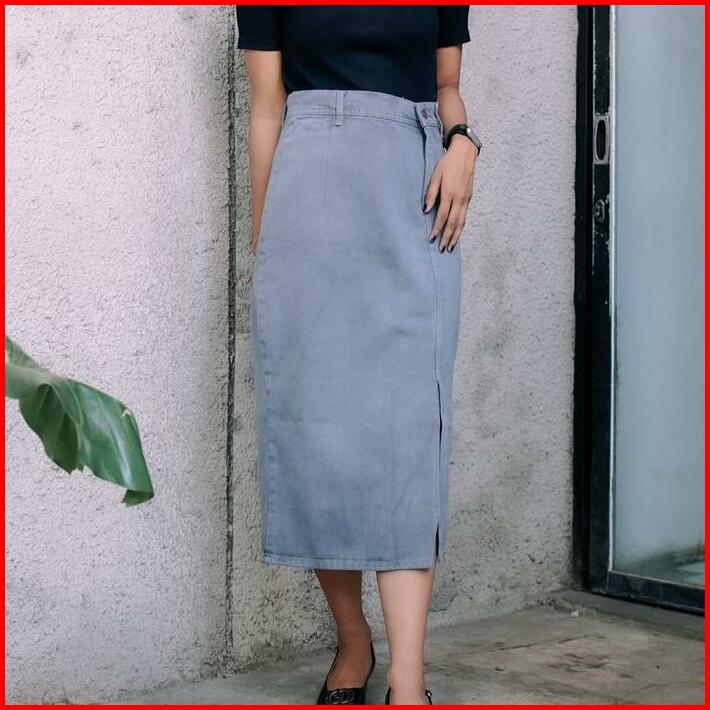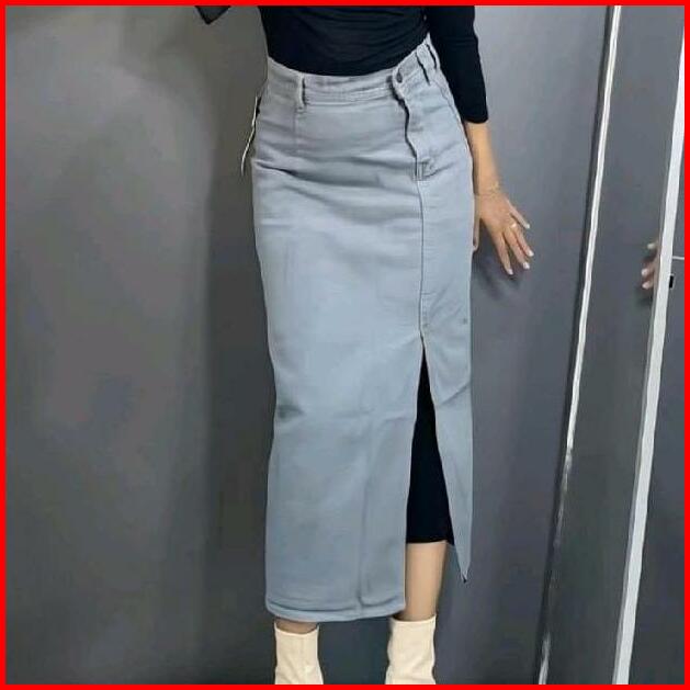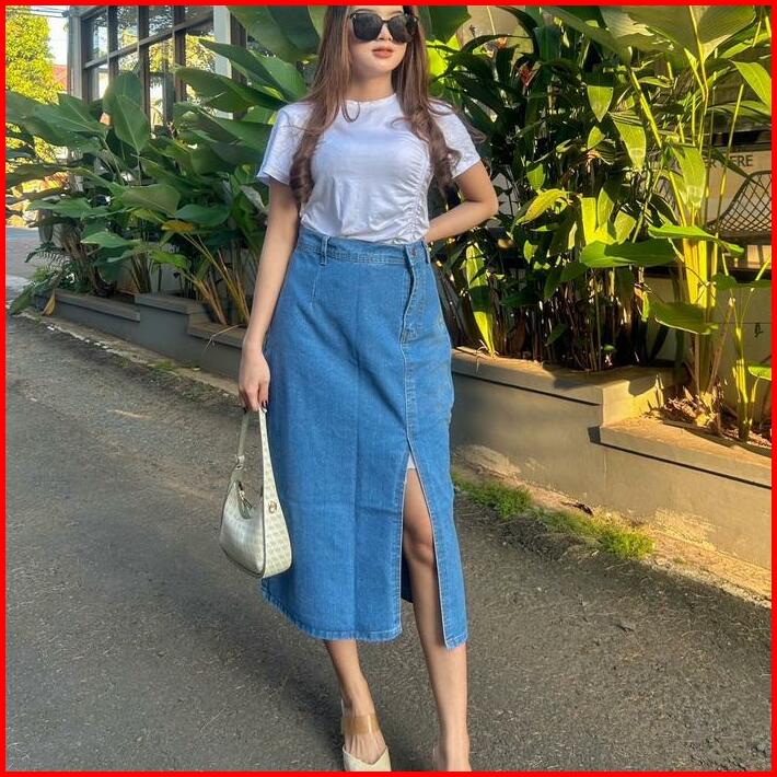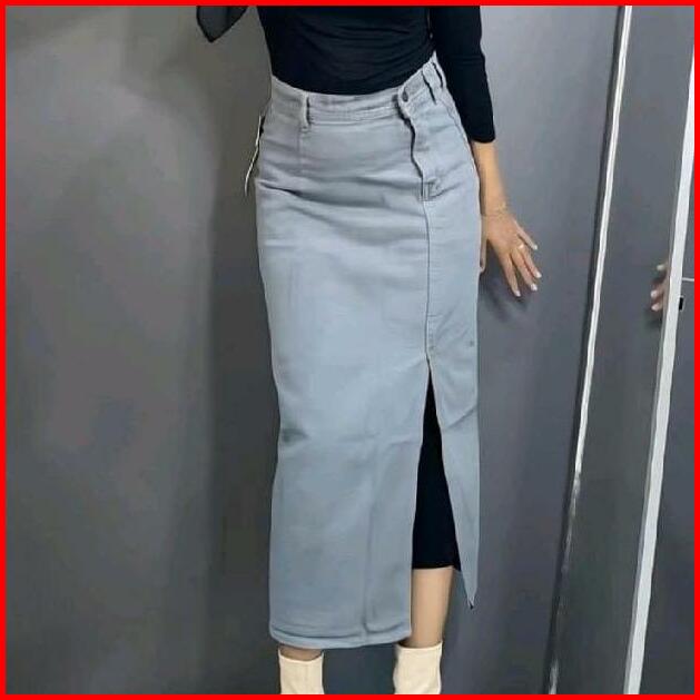 Rok Jeans Highwaist A-line -rok Jeans Wanita Korean Style Belah Samping Rok Mid Length Rok