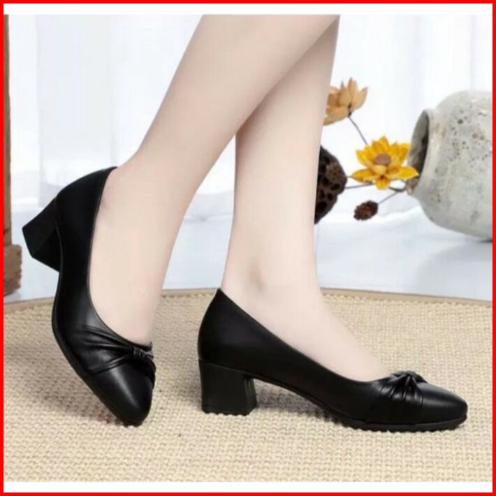 Sepatu Hitam Fashion Korea Wanita Hak 5cm High Heels Eg692 Sepatu Pesta Kerja Kantor Kondangan Formal Kasual Hak Kotak T