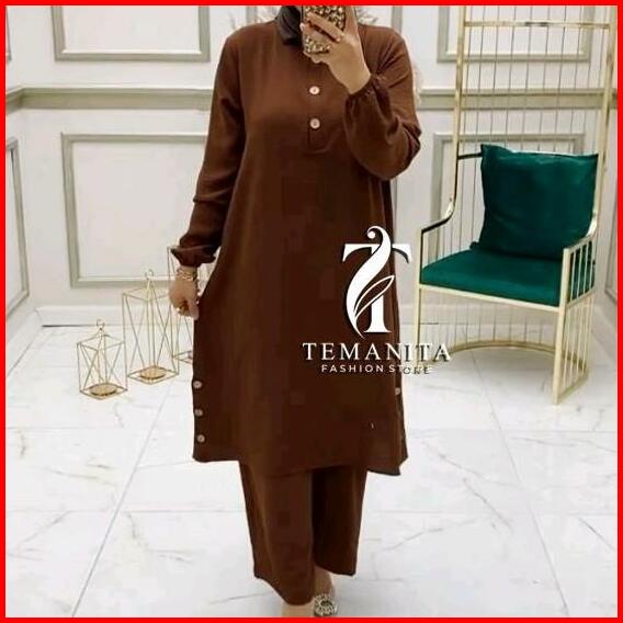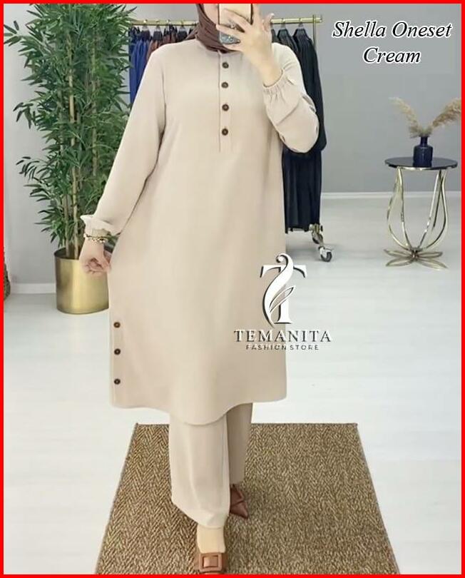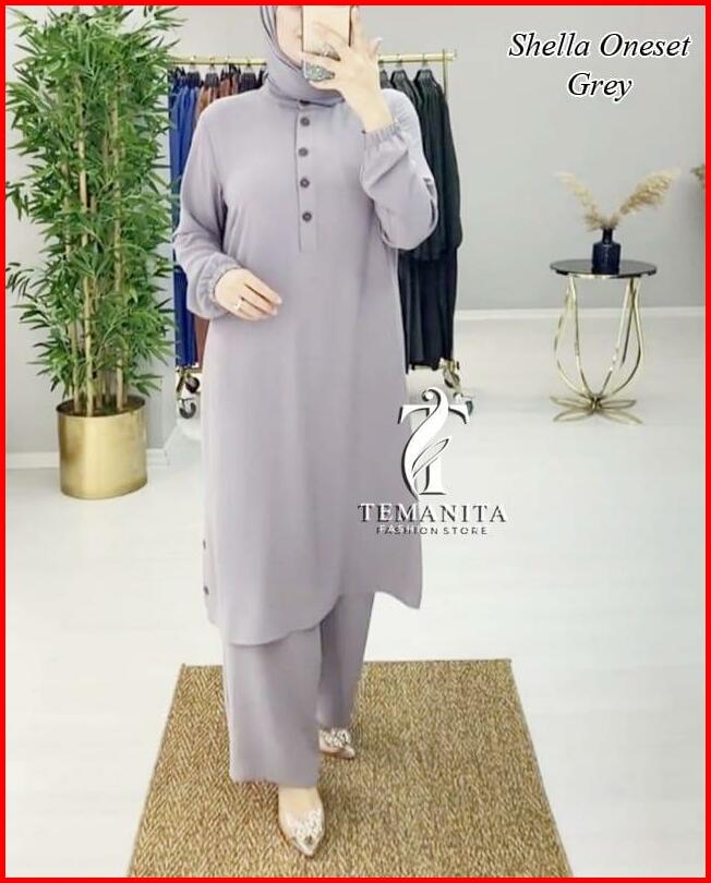 Shella Oneset Fashion Wanita Dewasa Muslim Formal Casual Crinkle Import Premium Nyaman Baju Panjang Atasan Setelan Celan