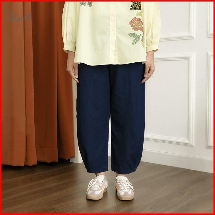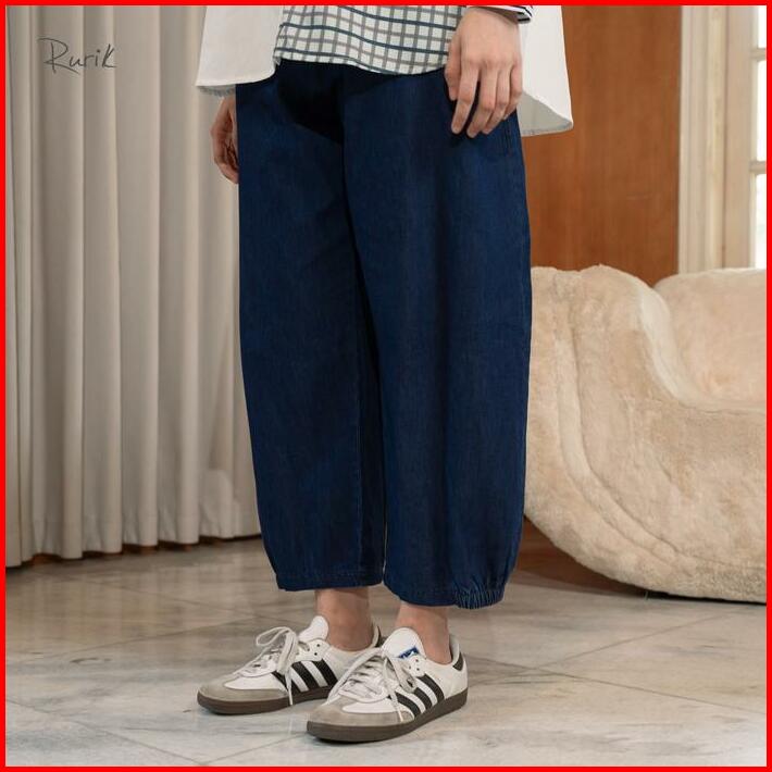 Rurik Kamir Pants Jeans Celana Wanita Denim Panjang Baggy Retro Loose Pendek