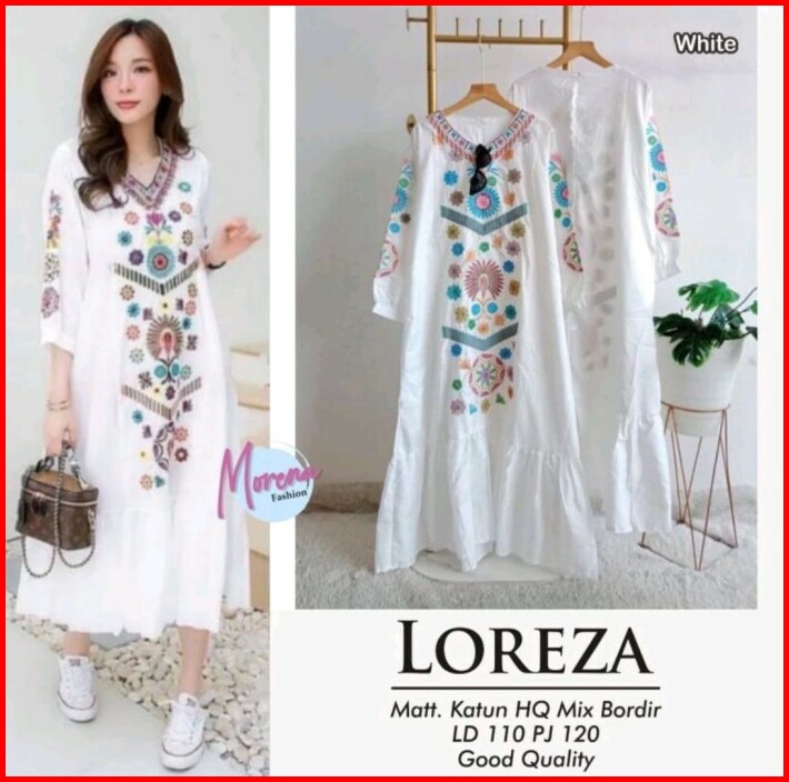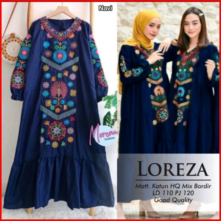 Baju Gamis Wanita Premium Loreza Dress Katun Premium Mix Bordir