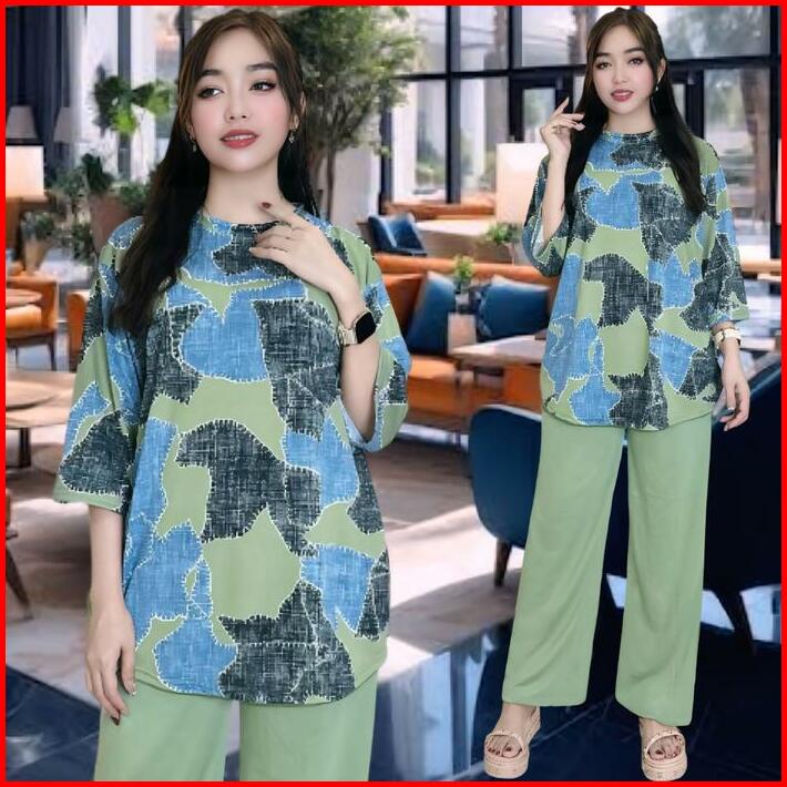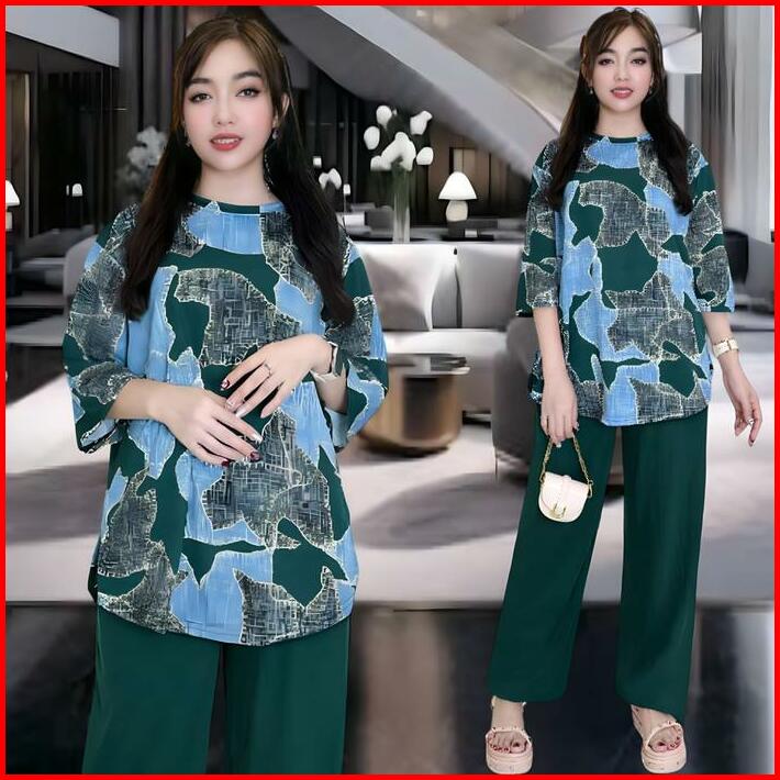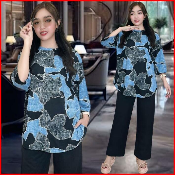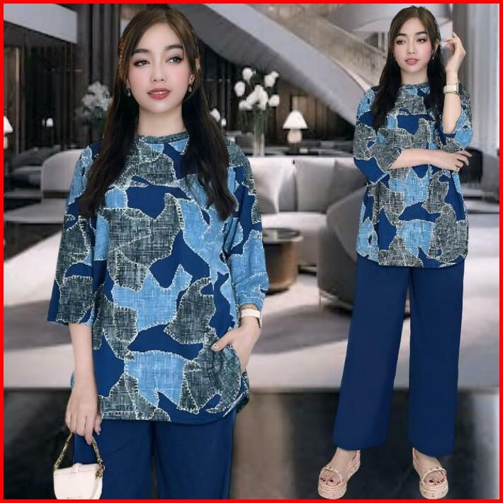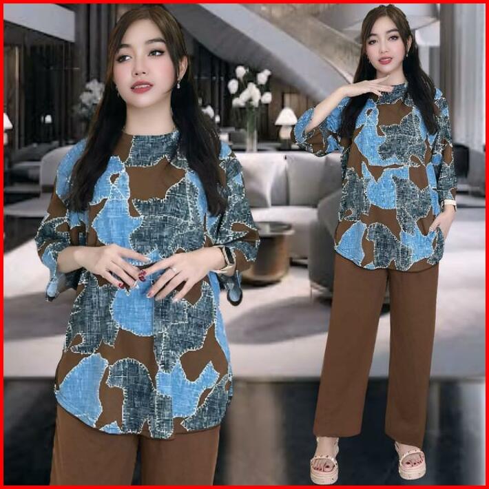 Adila Setelan Wanita Ld 120 Ld 130 Celana Lurus Dan Atasan Oval Belahan Kiri Dan Kanan Oversize Wanita Celana Lurus Kare