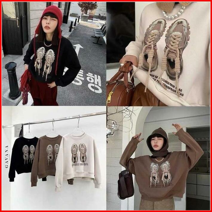 Shoes Basic Super Premium High Quality Sweater Crewneck Wanita Kekinian Korean Style Suiter Crewnek Baju Atasan Hoodie L