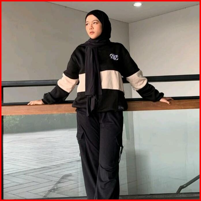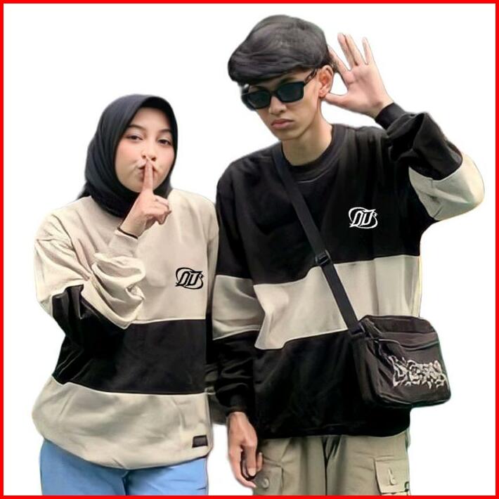 Sweater Crewneck Kombinasi Pria Wanita Bahan Fleece Tebal Lembut Nyaman Unisex Distro Sweatshirt Keren