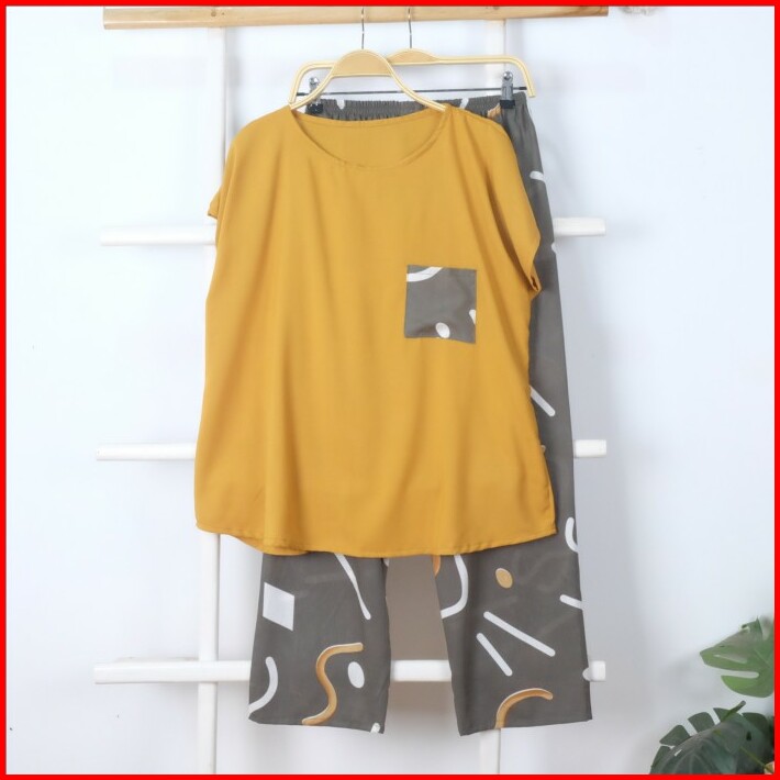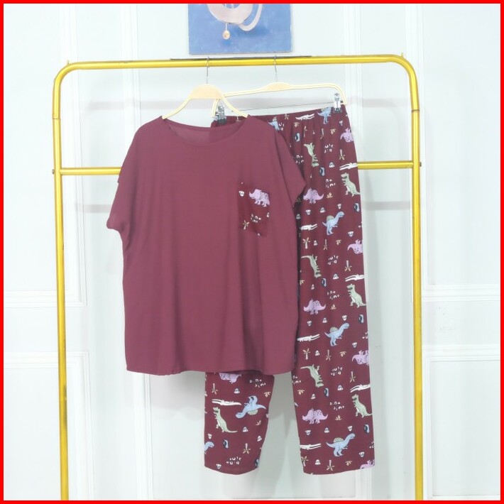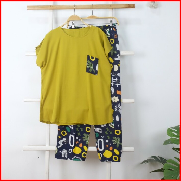Babydoll Setelan Piyama One Set Baju Tidur Wanita Rayon Celana Panjang