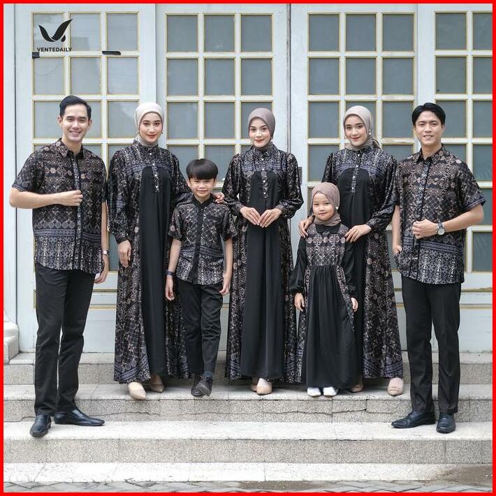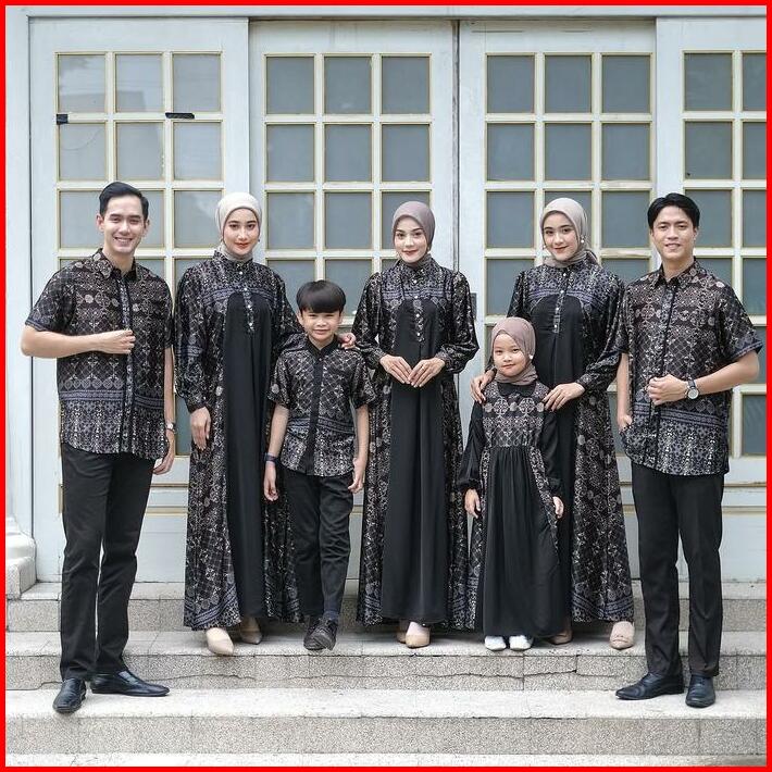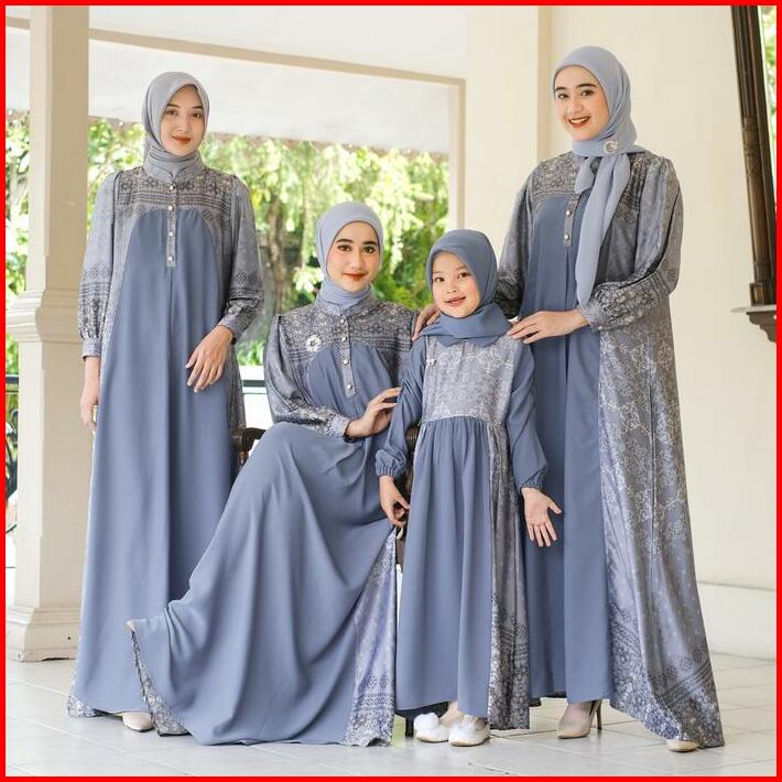 Haiba Family Sarimbit Lebaran 2025 Baju Couple Seragam Keluarga Pasangan Kemeja Pendek Gamis Dewasa Muslim Motif Terbaru