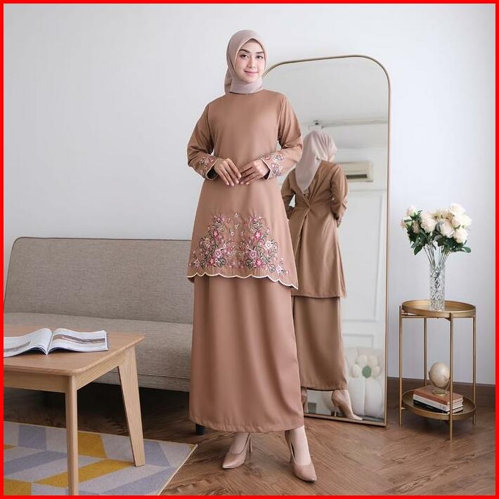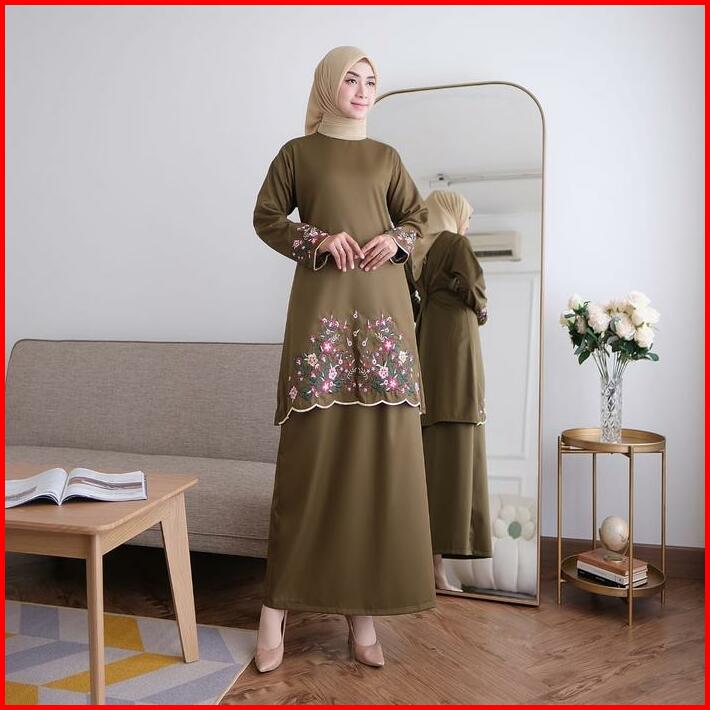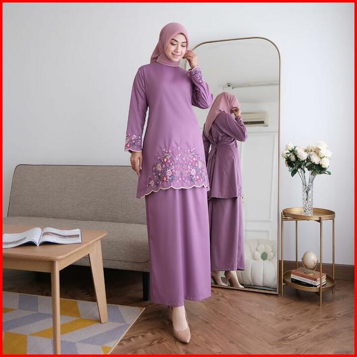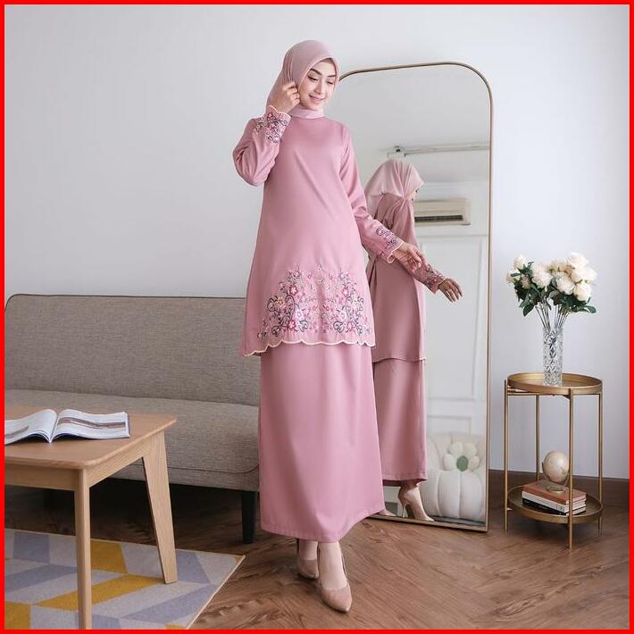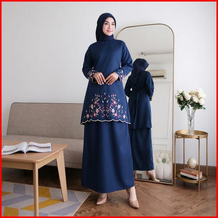 One Set Kinara Kurung Melayu Katun Toyobo Bordir Bunga Fashion Muslim Wanita Terbaru Terlaris Setelan Dewasa Baju Panjan