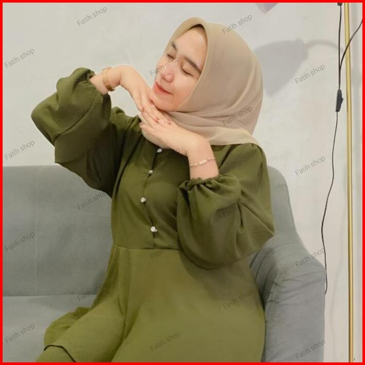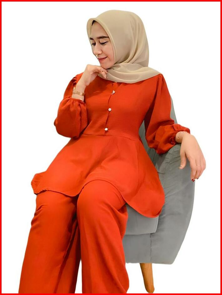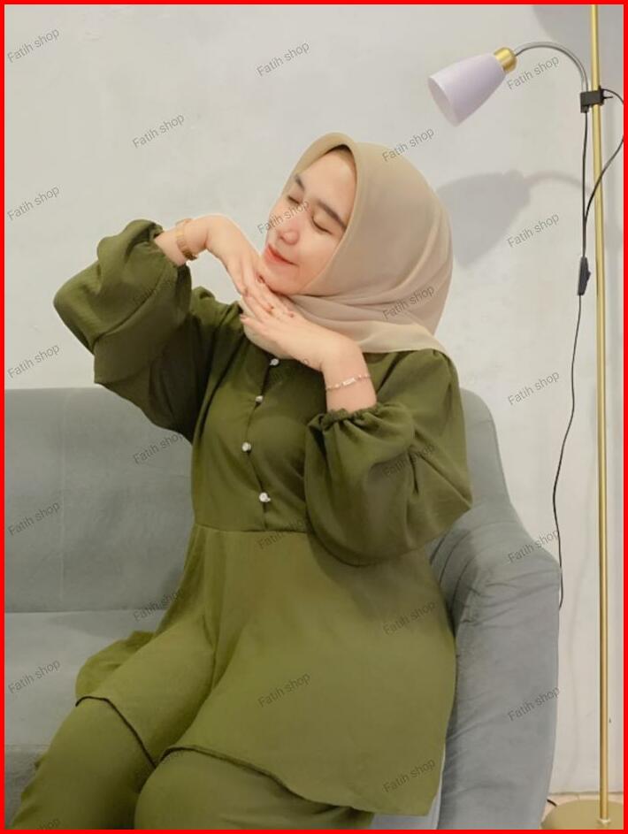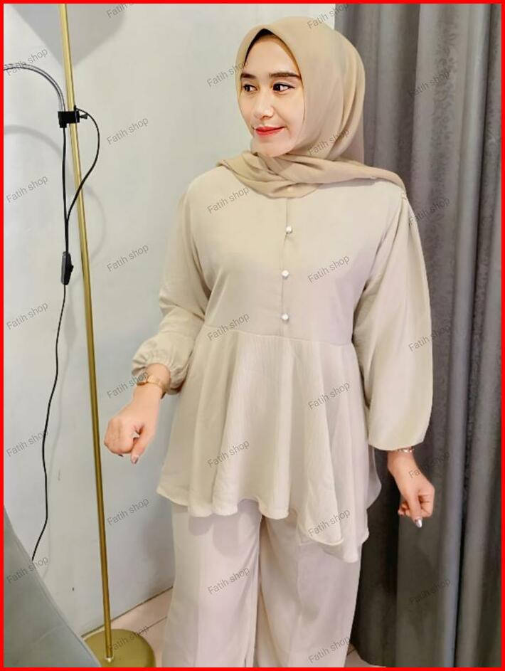 Setelan Wanita One Set Ranisa Cringkel Polos Muslim Baju Crinkle Airflow Celana Dewasa Panjang Atasan Kancing Casual