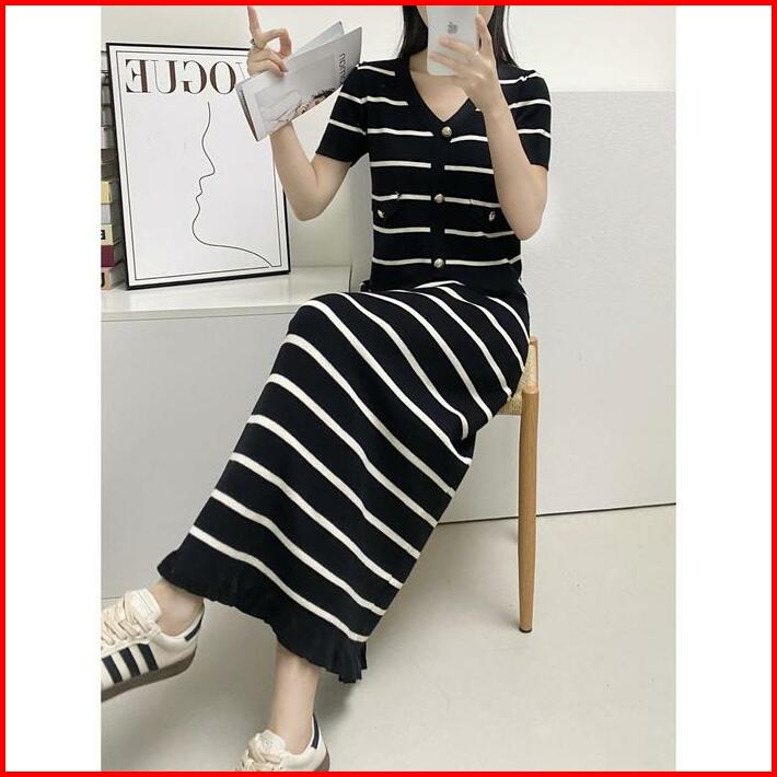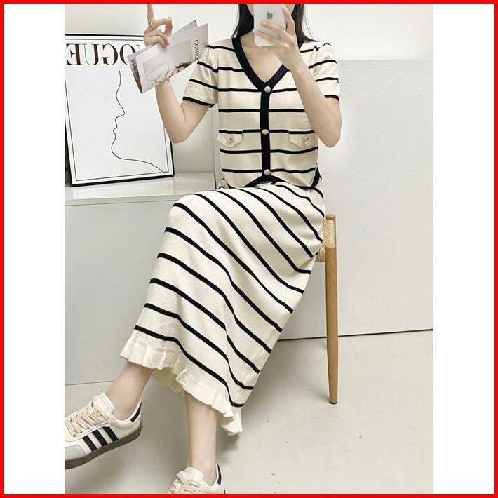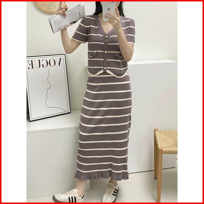 Tm S7280 Setelan Wanita Narida Striped Rajut