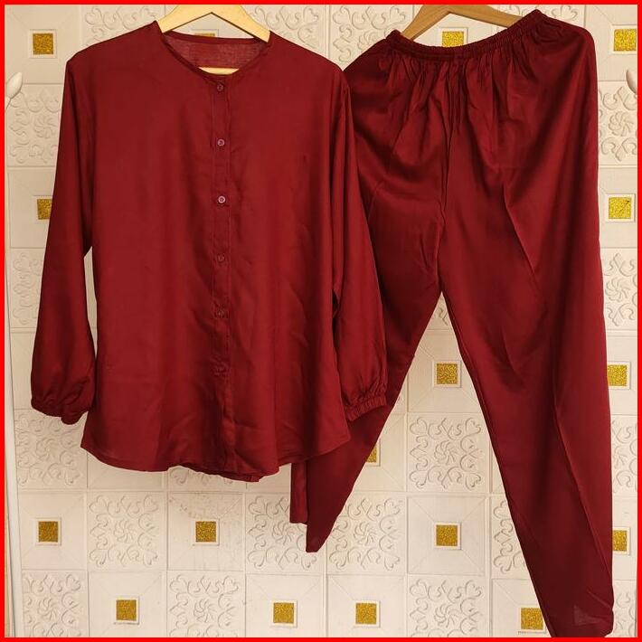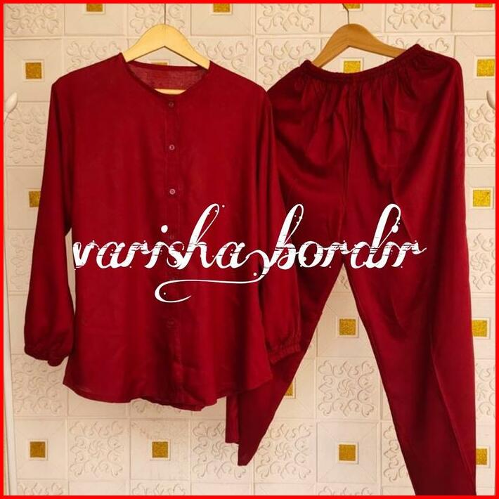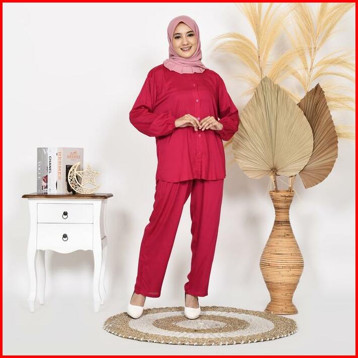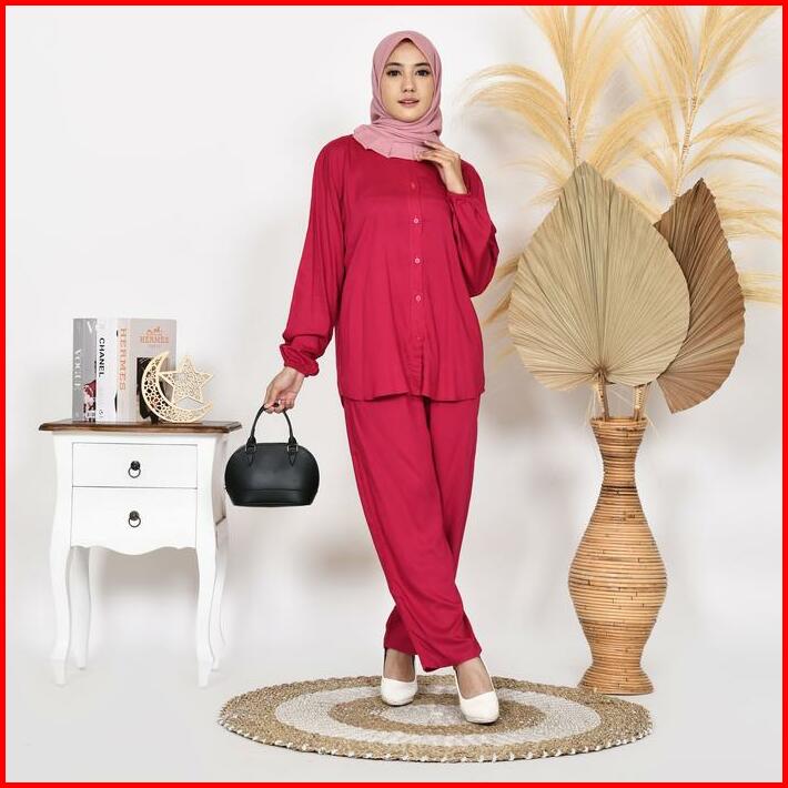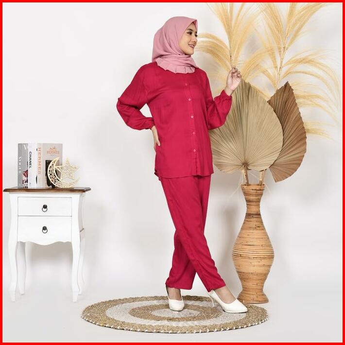 Karina Oneset Setelan Piyama Wanita Katun Rayon Tpo Atasan Celana Fit Kancing Tangan Panjang