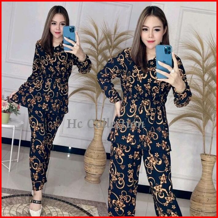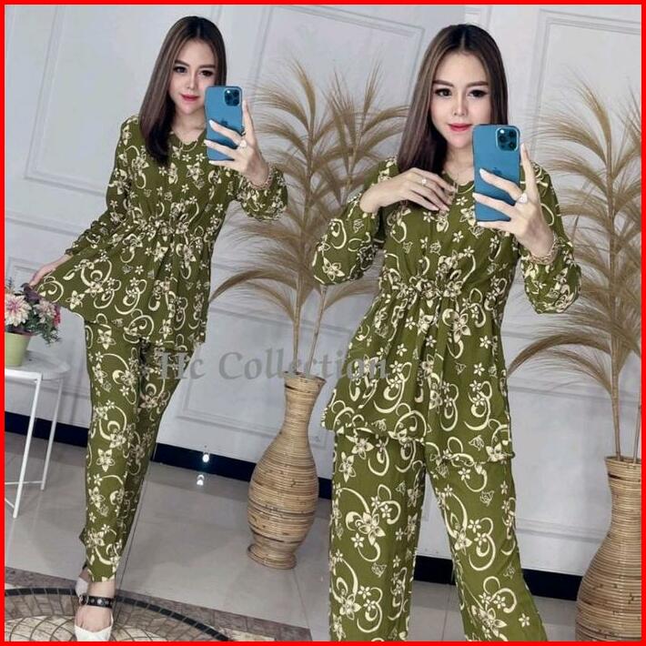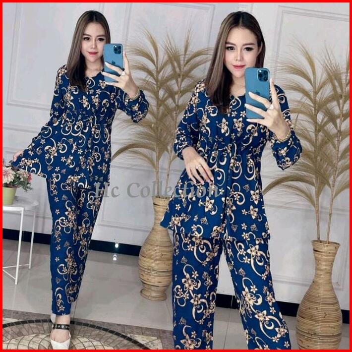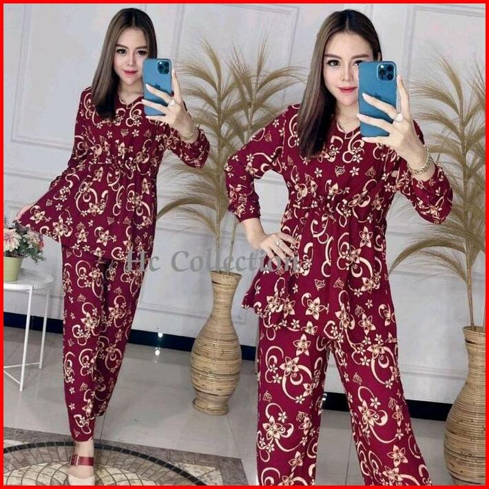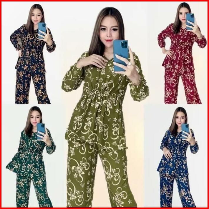 Setelan Wanita Lengan Panjang Motif Tali Serut Depan Busui Resleting Depan Rayon Premium Harga Grosir Murah Tebal Tie Pe
