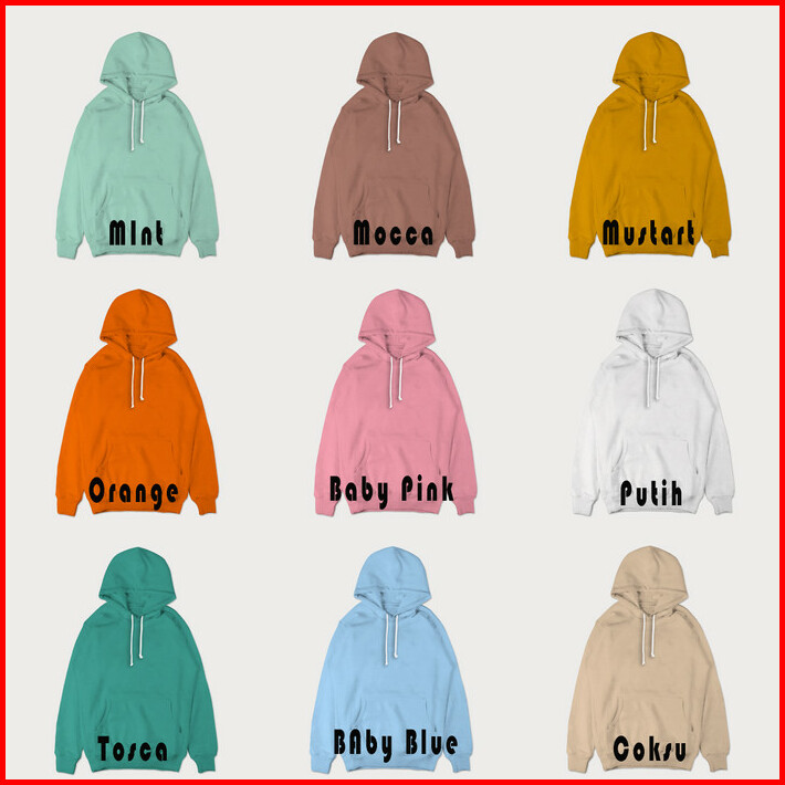 PUTIH, HITAM, COKSU, BABY PINK, BABY BLUE, MERAH BATA, FANTA, MUSTARD, NAVY