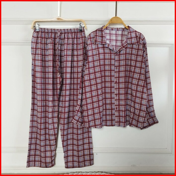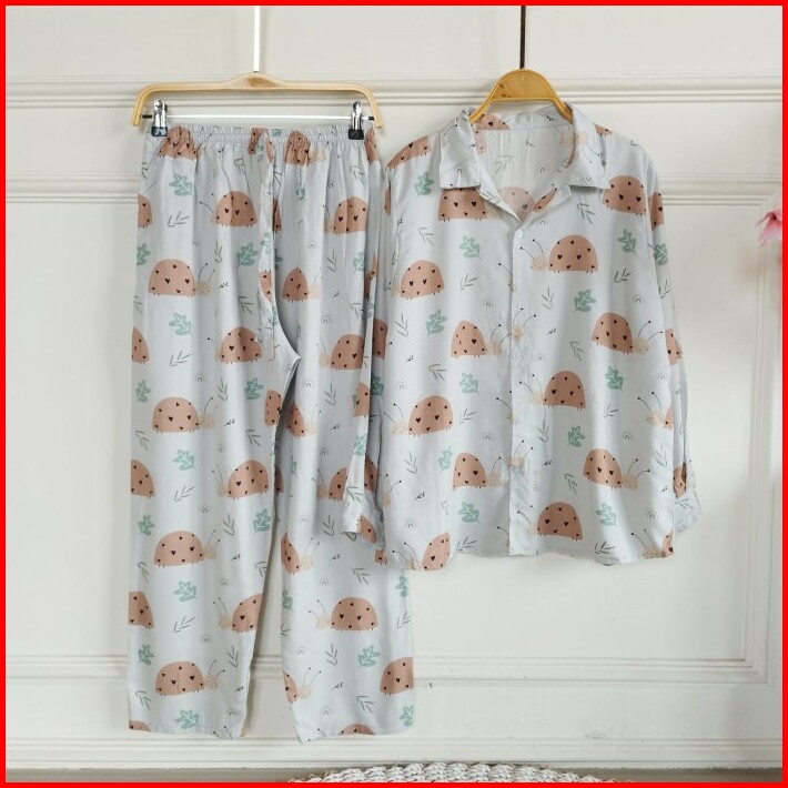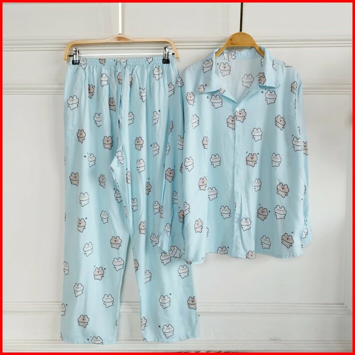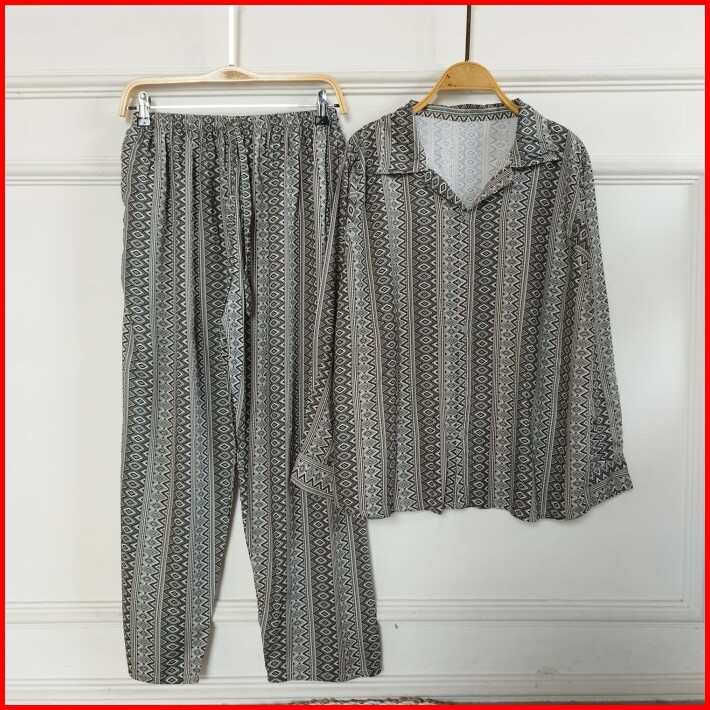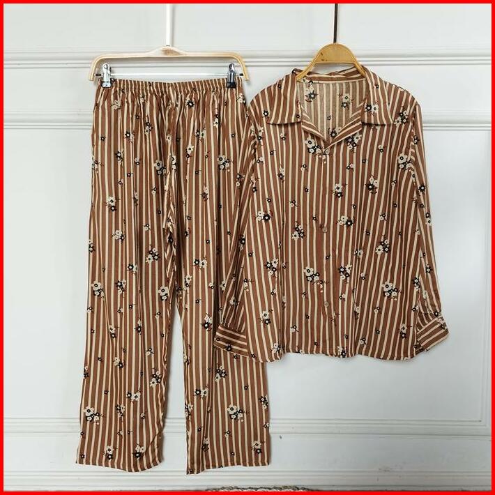 Set Piyama Wanita Baju Tidur Setelan Rayon Dewasa Lengan Panjang