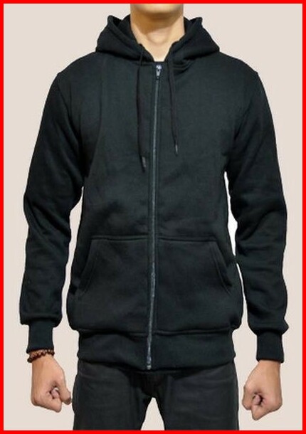 Jaket Sweater Hoodie Zipper Polos Hitam