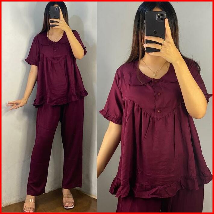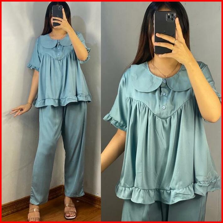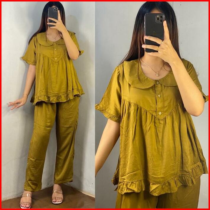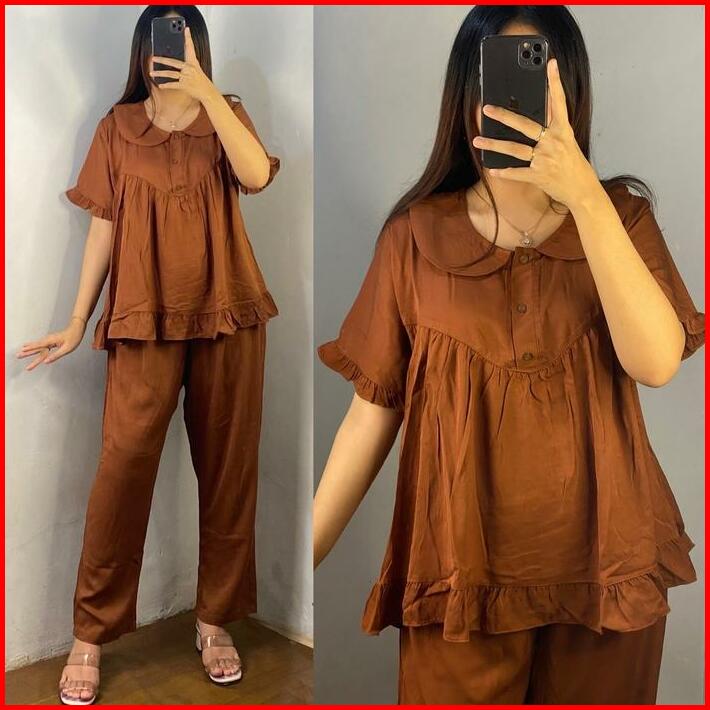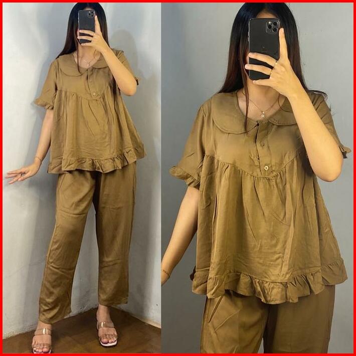 Setelan Saviera Bahan Twil Premium Tangan Pendek Dan Celana Panjang Kancing Busui Bumil Friendly