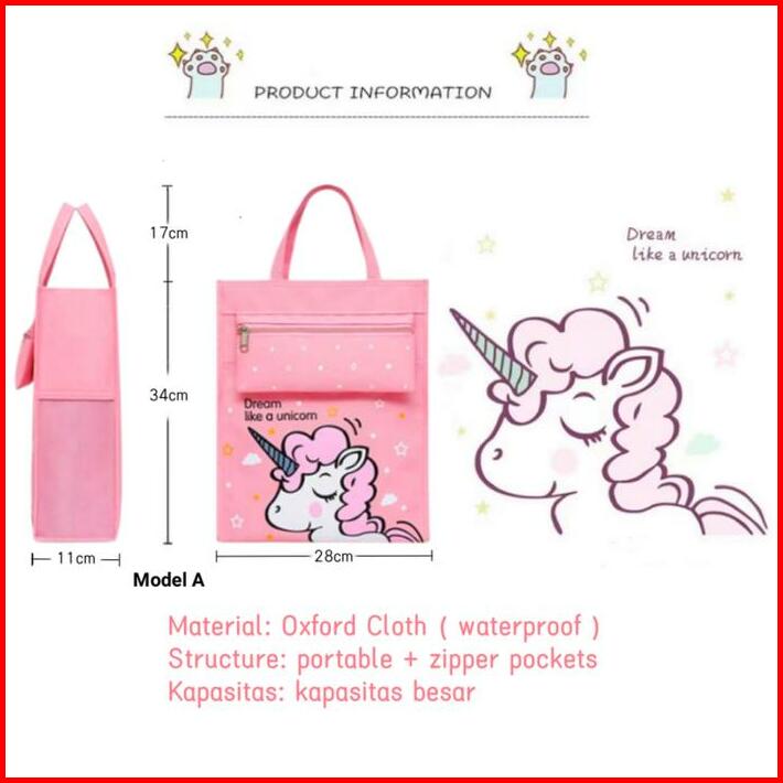 Tas Kursus Kartun Tas Belajar Lucu Tas Sekolah Murah Cute Canvas Tote Bag Motif Tas Les Buku Anak Tas Selempang Multi Fu