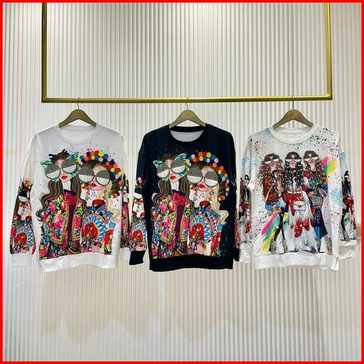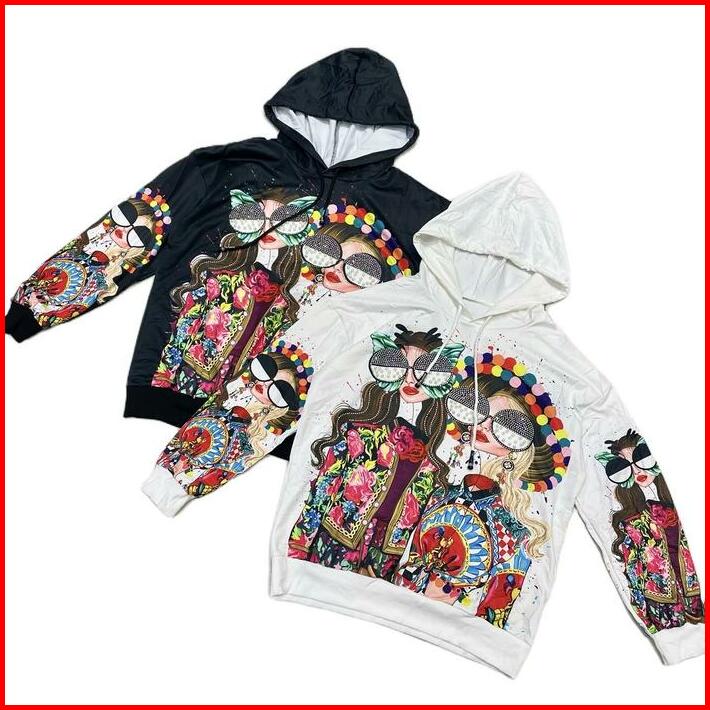 Hoodie Sweater Cotton Scuba Printing Motif Motek Timbul 3d Mutiara Oversized Nyaman