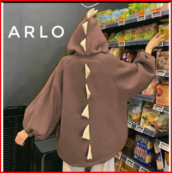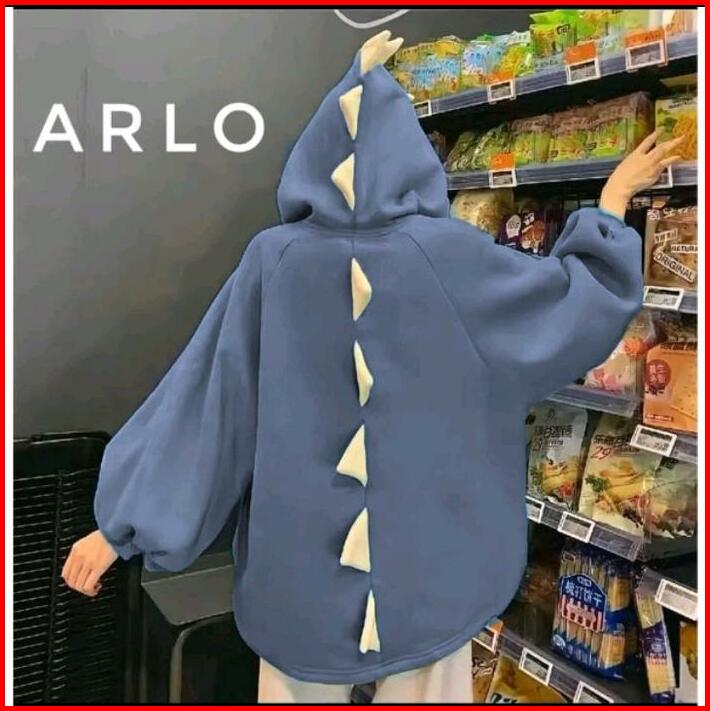 Dinos Sweater Wanita Oversize Hoodie Korean Style Crewneck Basic Remaja Atasan Cewek Fleece