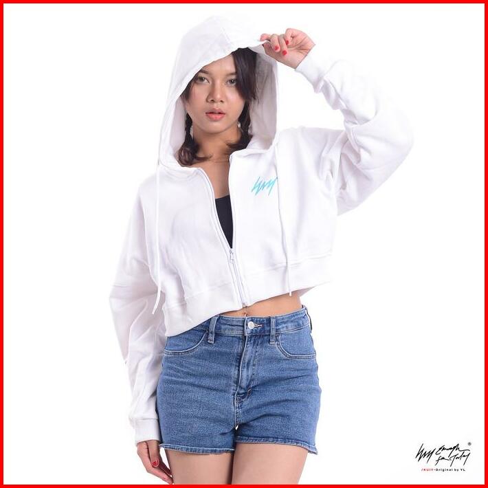 Sweater Crop Oversize Hoodie Cewek Lengan Panjang Wanita Zipper Pullover Jumper Don T Stop Putih Basic Fleece Crewneck A