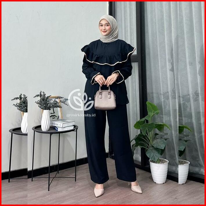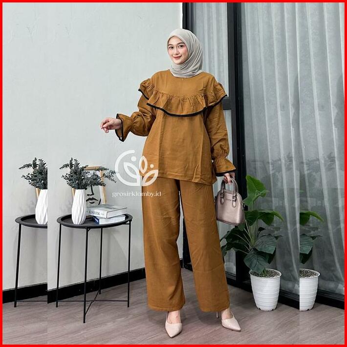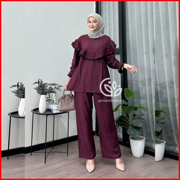 One Set Umbrella Rayon Busui Jumbo Rempel Atasan Celana Wanita Polos Setelan Tebal Adem Nyaman