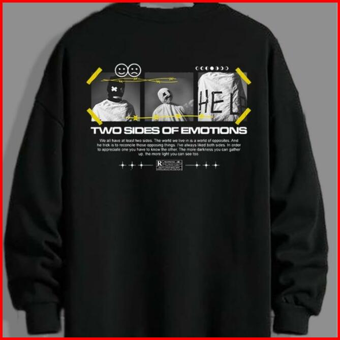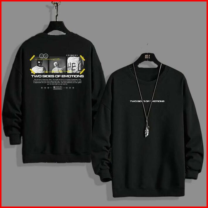 Sweater Crewneck Unisex Emotions Fleece Basic Oversize Distro Hoodie Panjang Pria Cowok Tangan