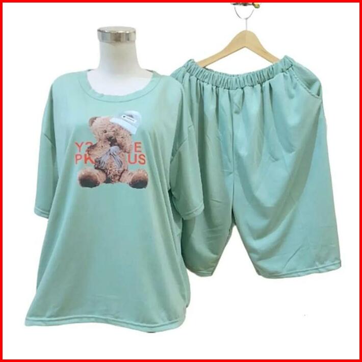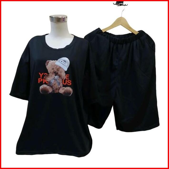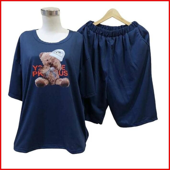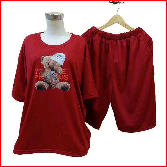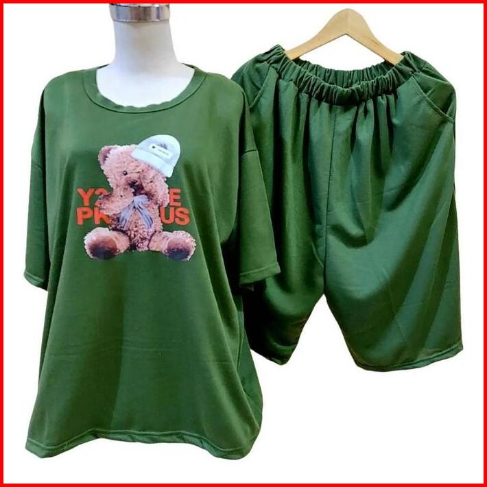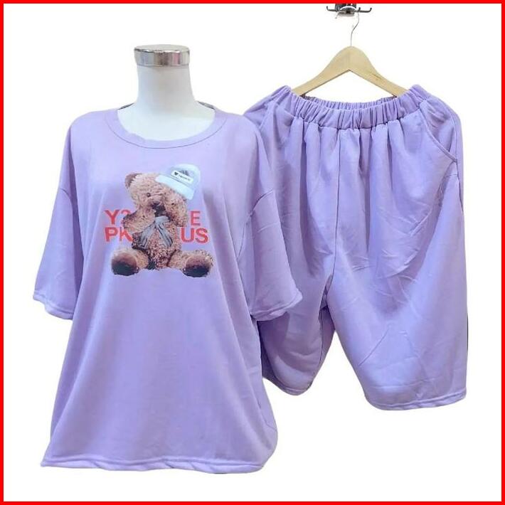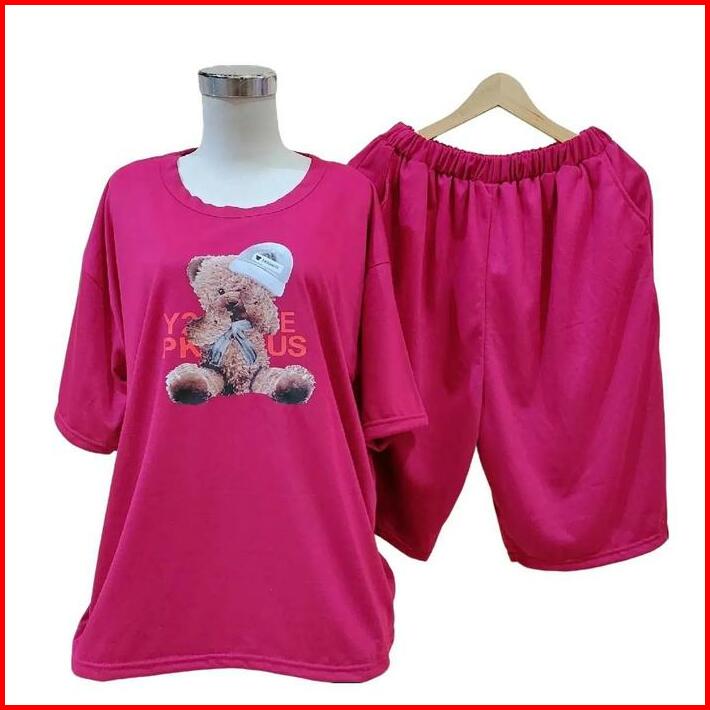 Baju Setelan Wanita Jumbo Ld 130 Ada Saku Kantong Bahan Babyterry One Set Kaos Wanita Oversize Teddy Bear Celana Pendek