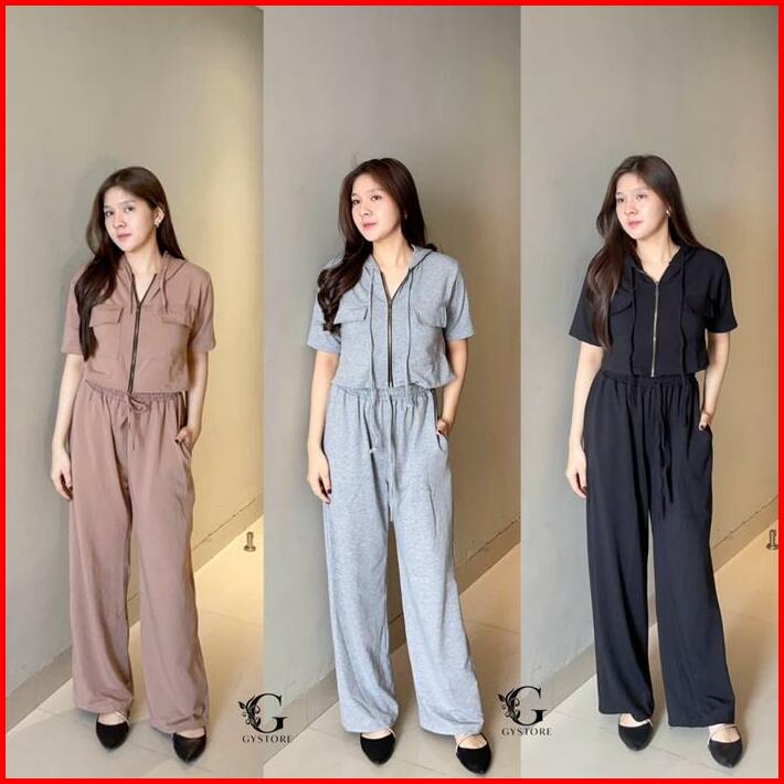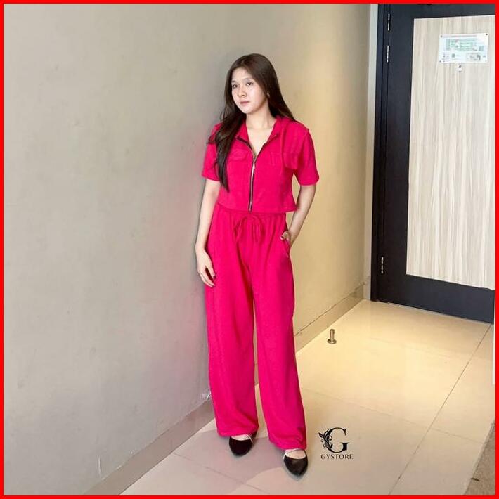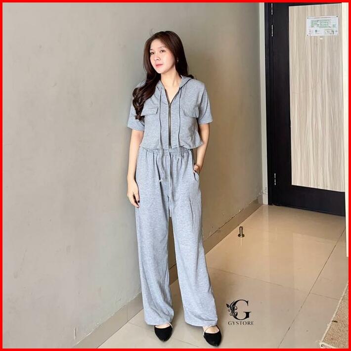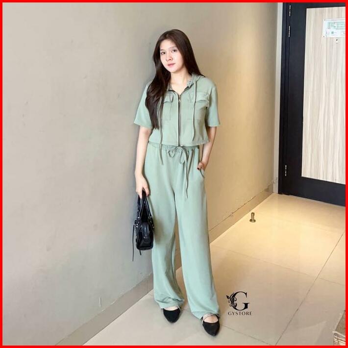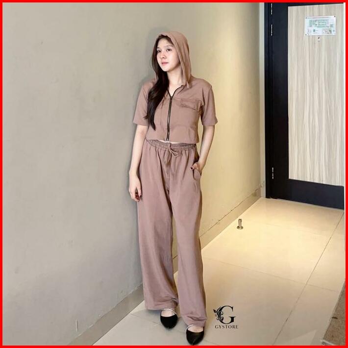 Stelan Rachel Crop Top Stelan Kulot Polos Setelan Wanita Casual Atasan Baju Celana Panjang
