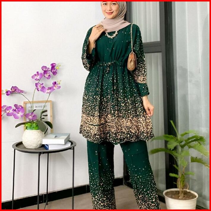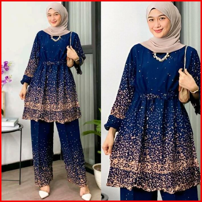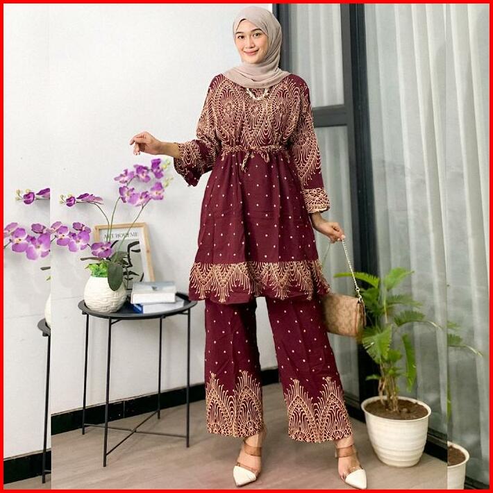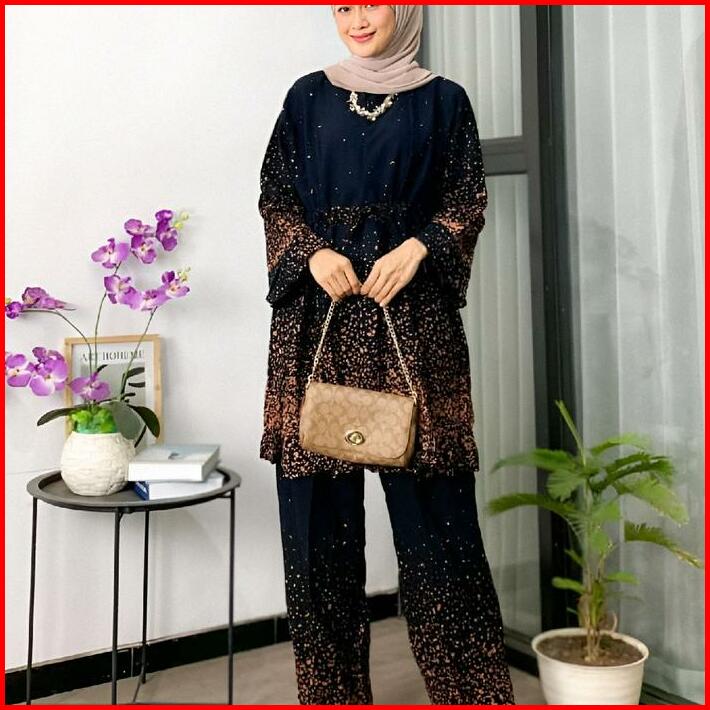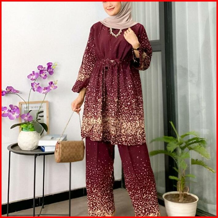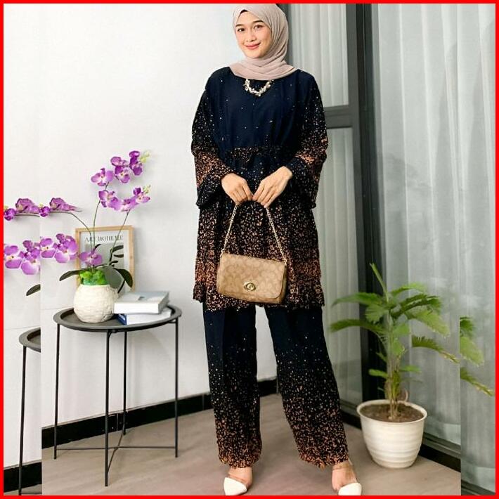 Setelan Wanita Tiedye One Set Tunik Ld 120 Jumbo Motif Batik Semprot Rayon Premium