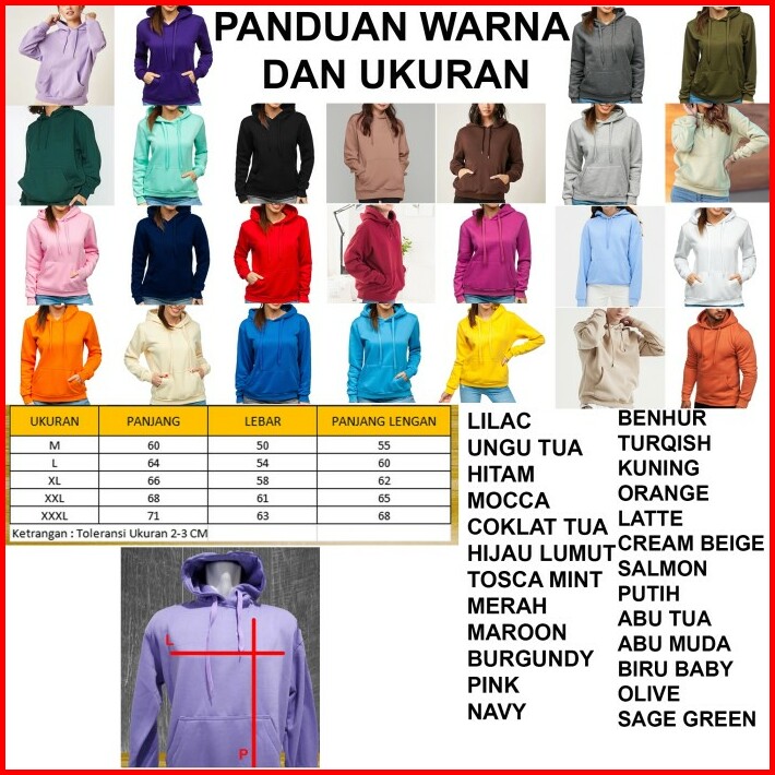 HITAM, CREAM, LILAC, HIJAU, MOCCA, NAVY, MAROON, ABU MUDA, WARNA LAIN, CREWNECK LILAC