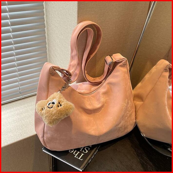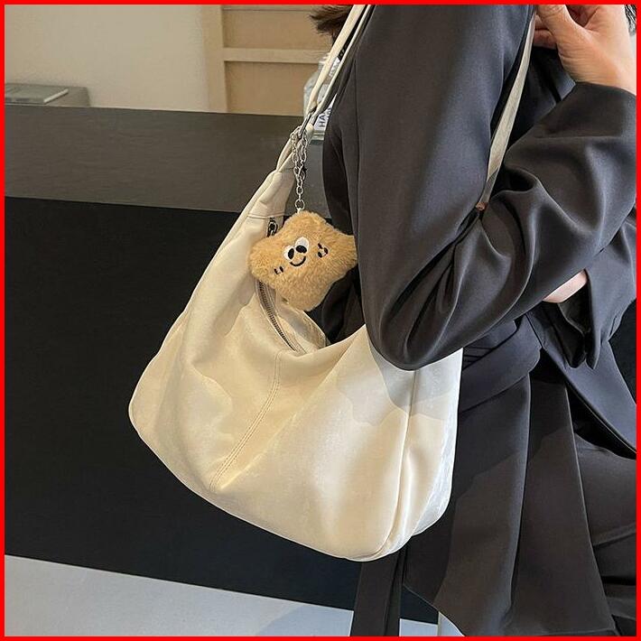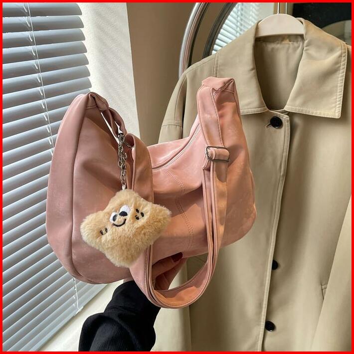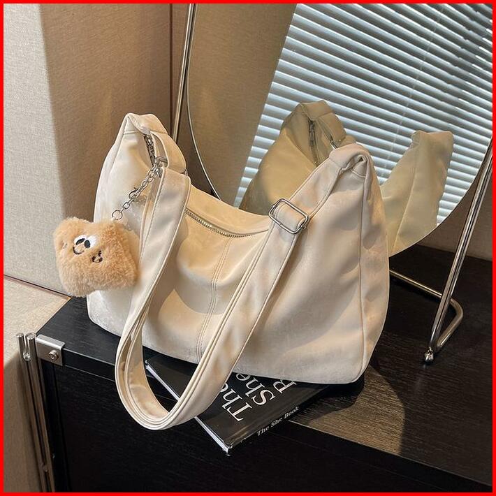 H T Retro Commuter Kapasitas Besar Warna Solid Tekstur Baru Permukaan Lembut Crossbody Sederhana Tote Shoulder Bag Wanit