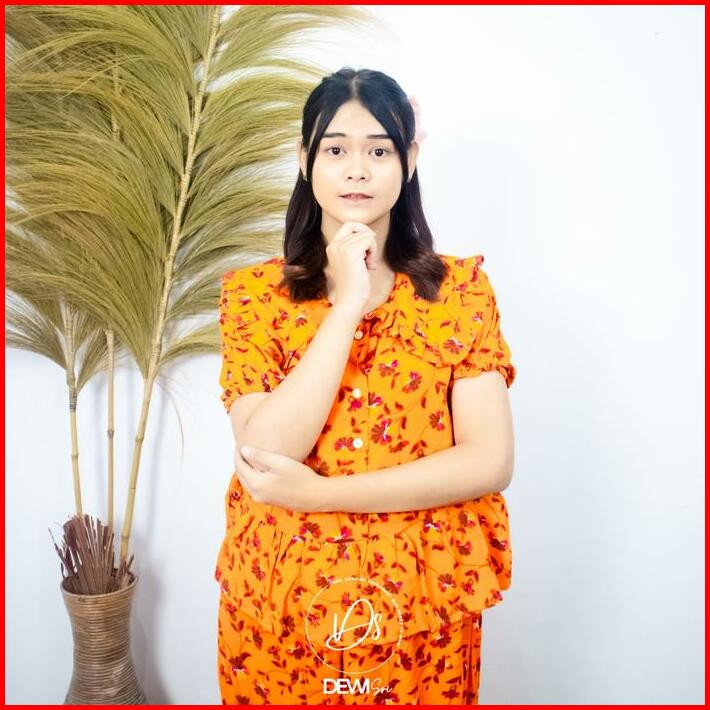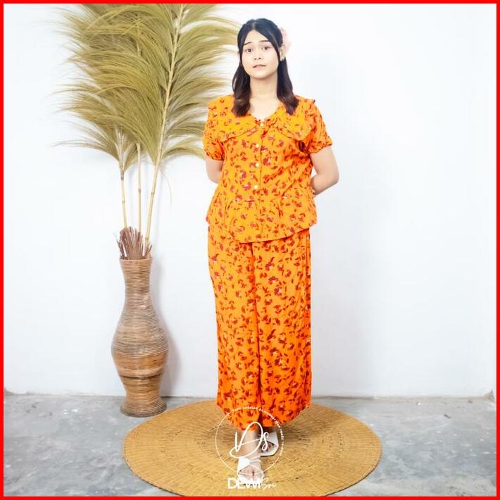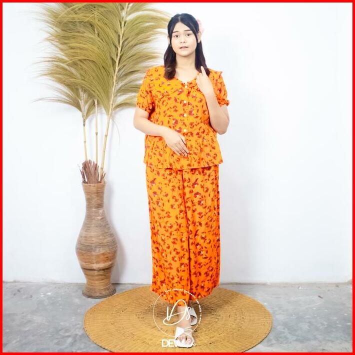 Setelan Sava Dewi Sri Oneset Jumbo Kekinian Motif Katun Rayon Wanita Dewasa