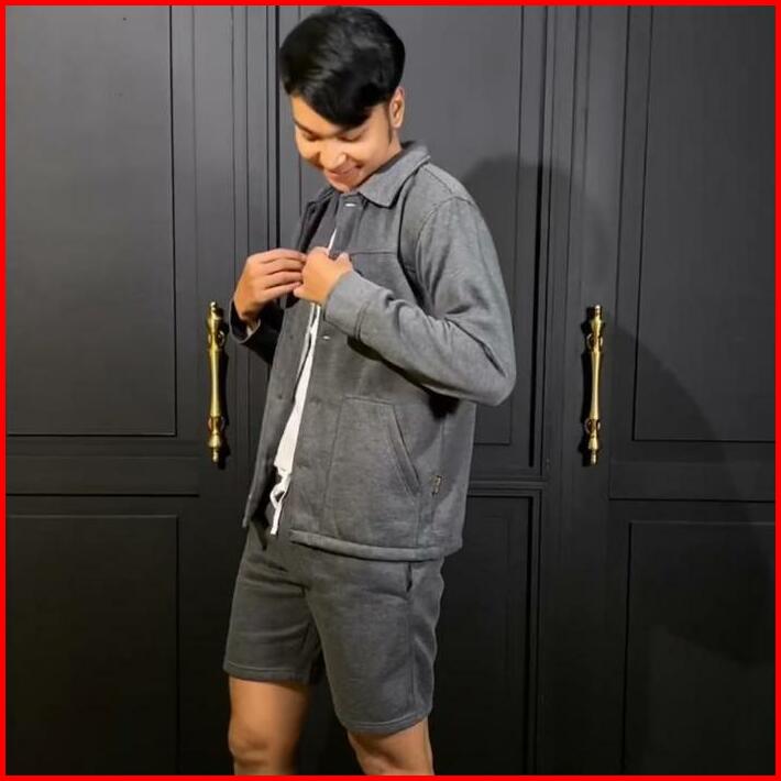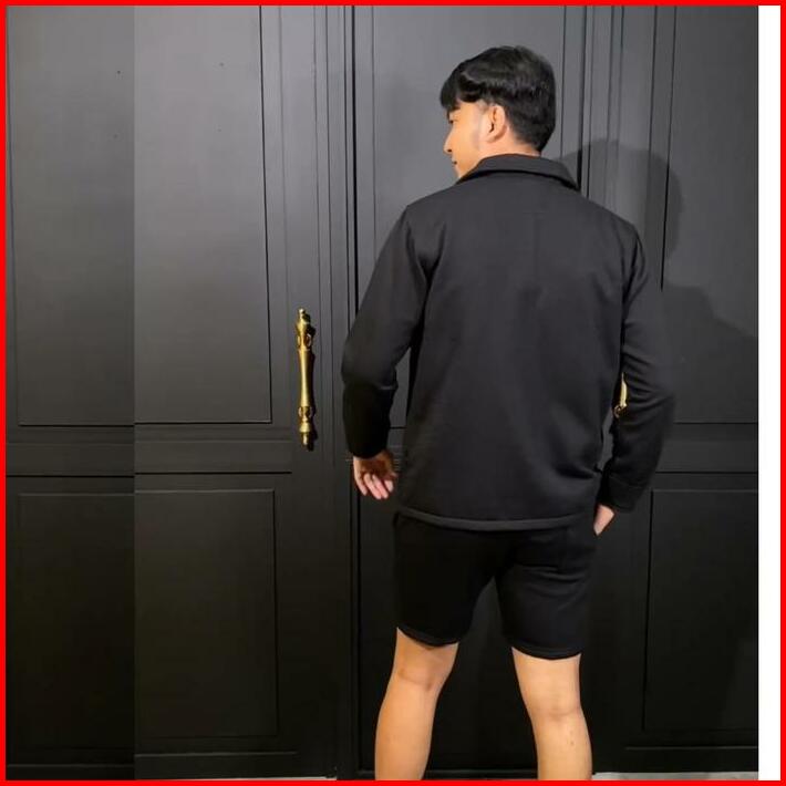 Jaket One Set Polos Pria Jaket Shacket Casual Jaket Pria Setelan Polos Hitam Panjang Celana Dewasa Hoodie Katun Keren
