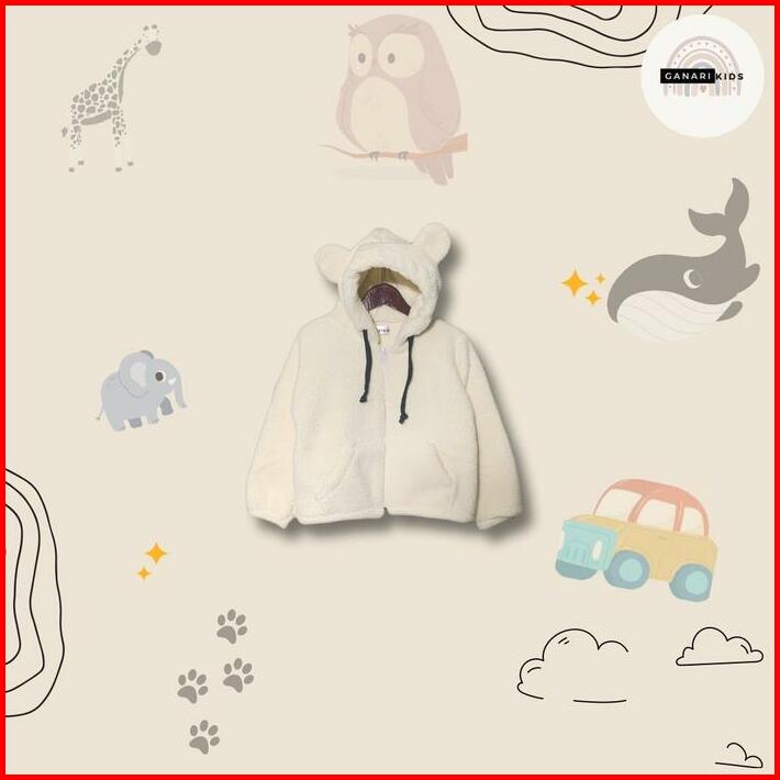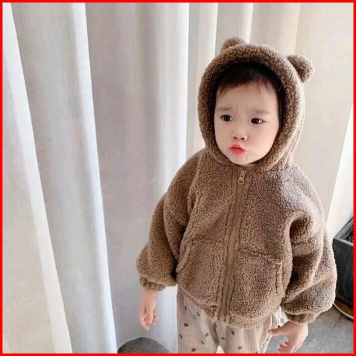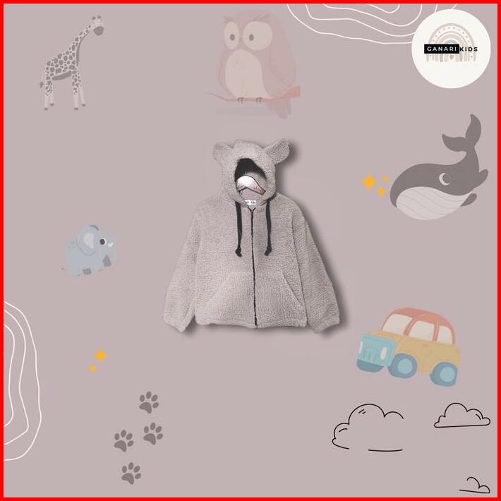 Sweater Hoodie Sherpa Anak Unisex Kids Zipper 2-9 Tahun Bear Cewe Fashion