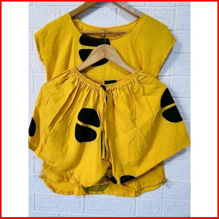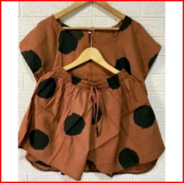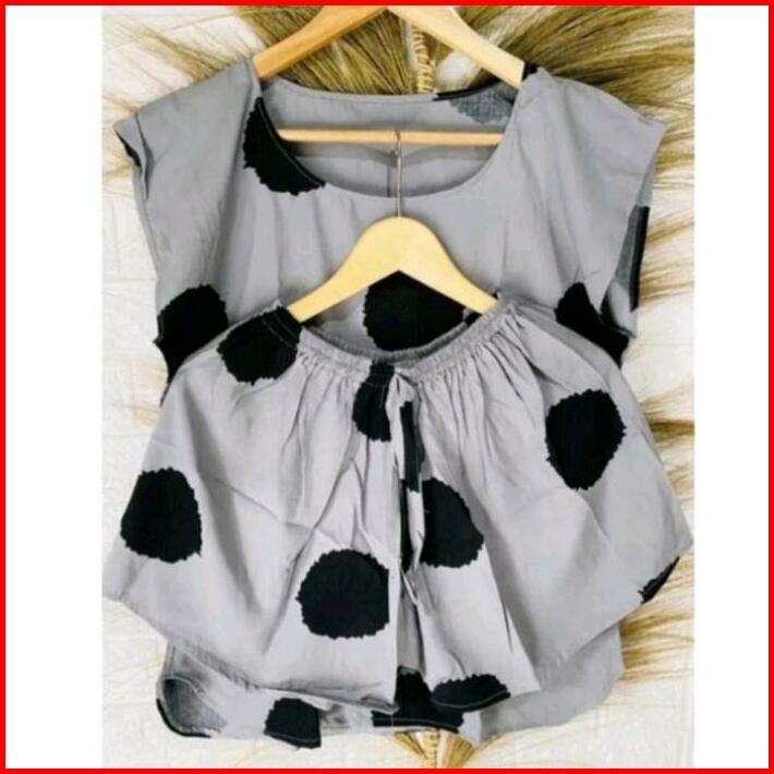 Setelan Baby Doll Celana Pendek Set Wanita Polka Dot