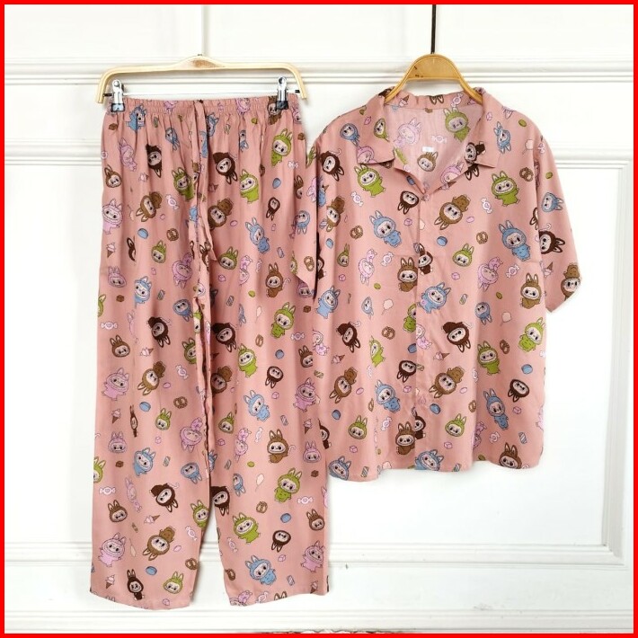 Setelan Baju Tidur Piyama Wanita One Set Pajamas Celana Panjang