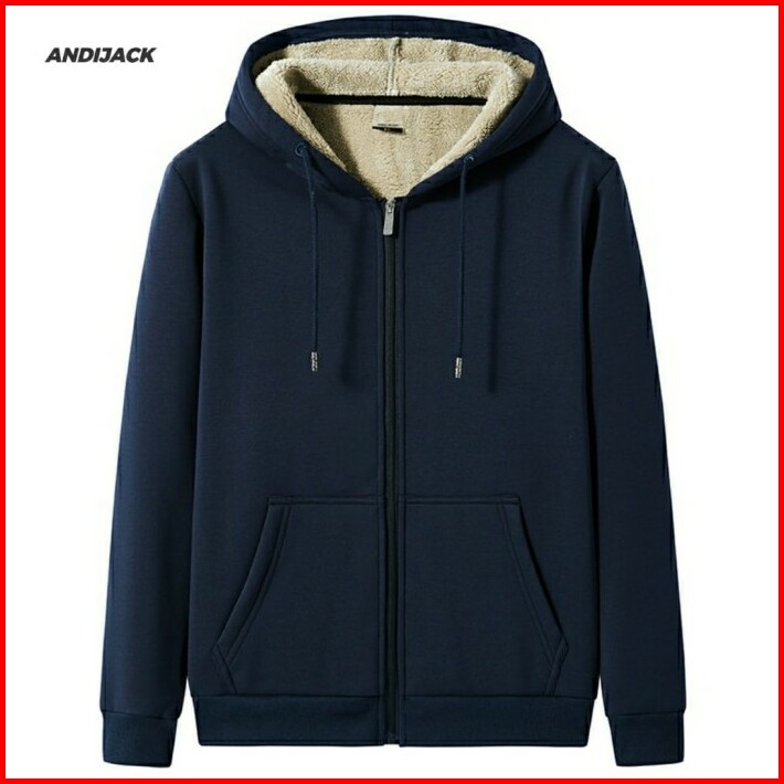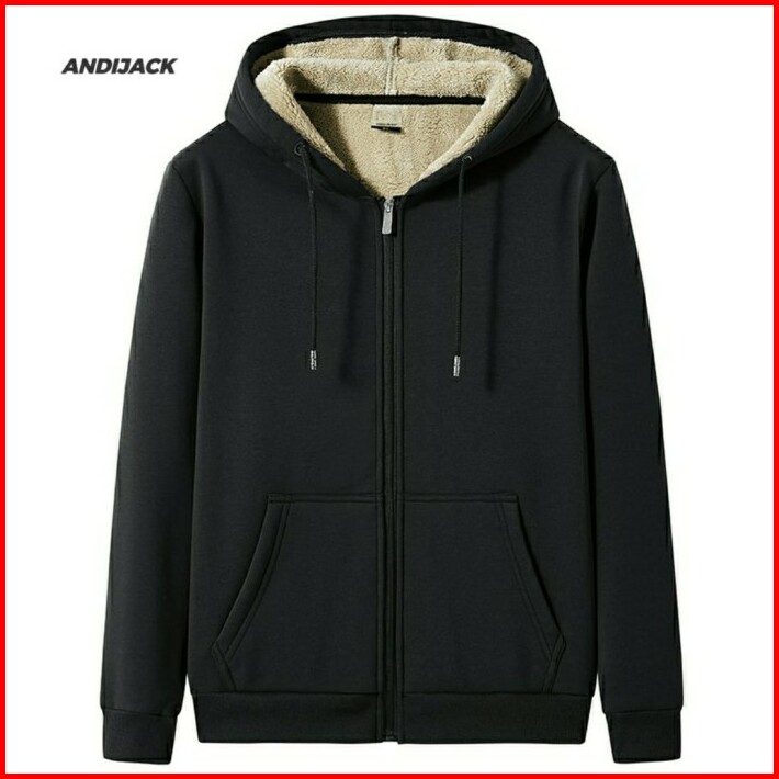Sweater Hoodie Zipper Polos Be Lapis Tebal Dan Hangat Ukuran Jumbo