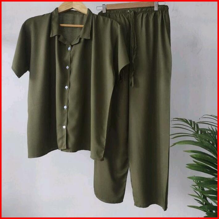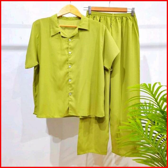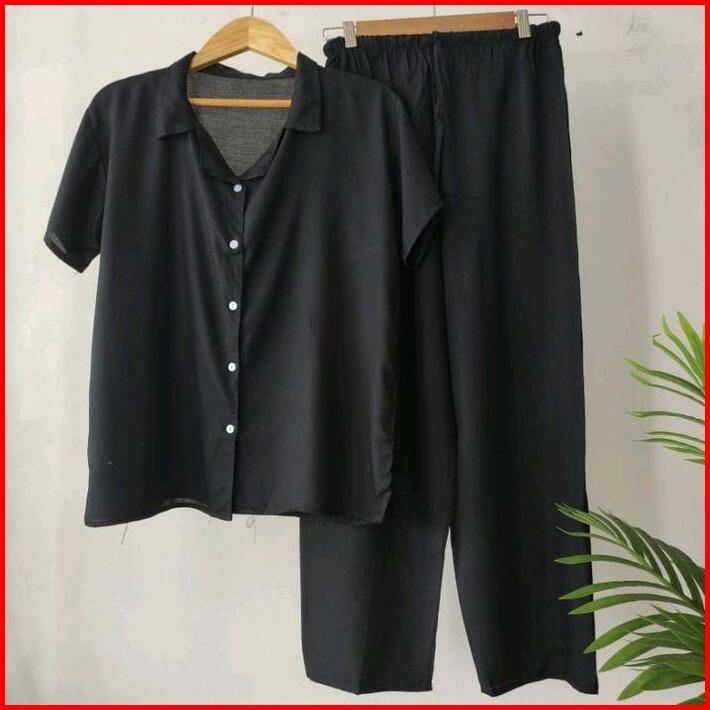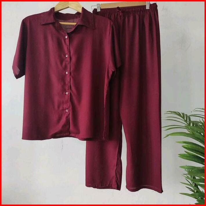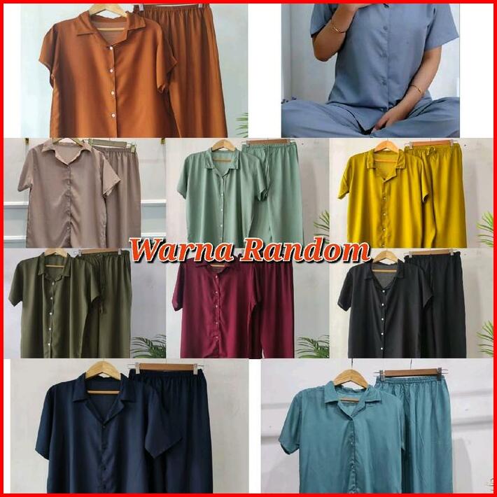 Setelan Wanita Kancing Lengan Pendek Rayon Polos Ld90 Sampai Ld150 Piyama Polos Baju Tidur Nyaman Baju Tidur Polos Setel