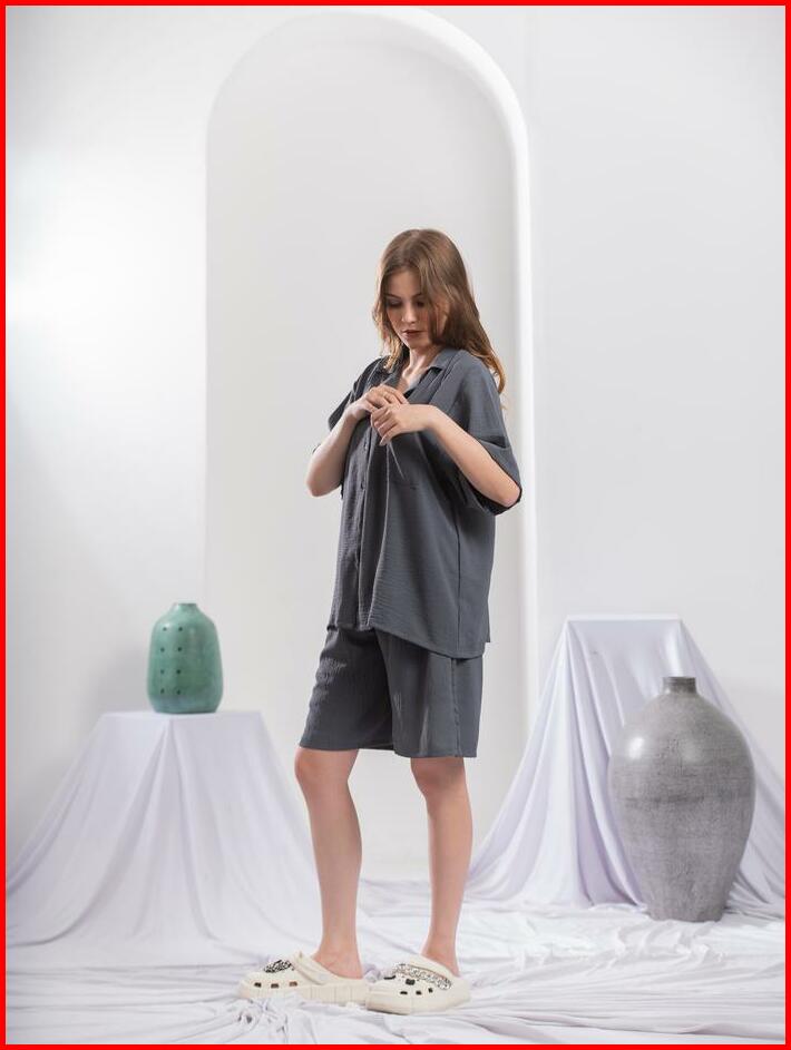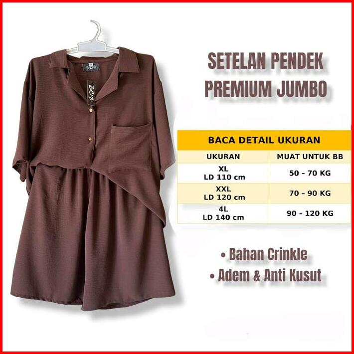 Ld 120 Dan 140 Baju One Set Setelan Wanita Pendek Kerah Super Jumbo Crinkle