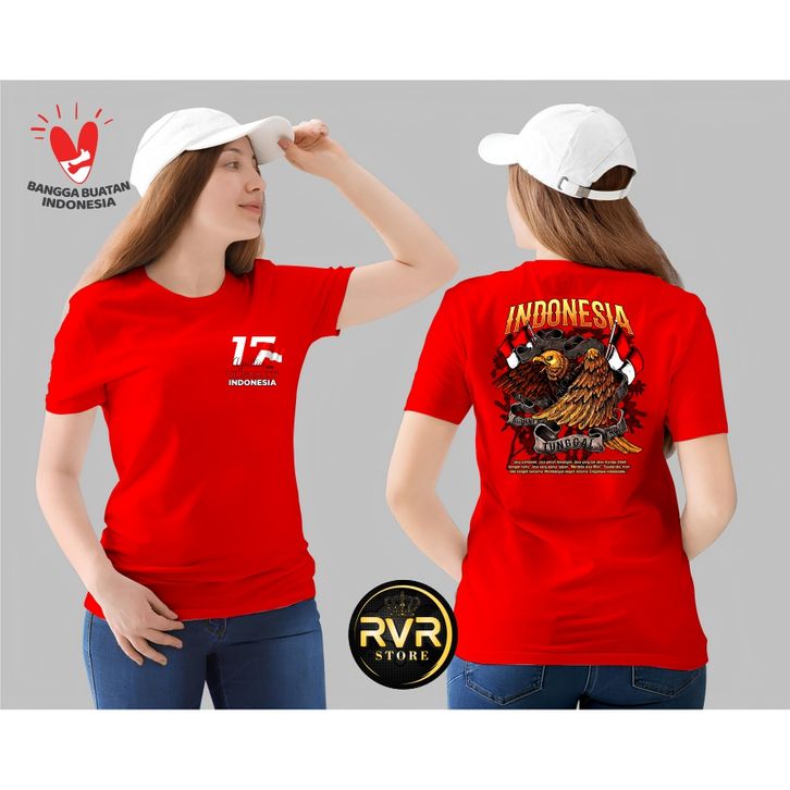 kaos lengan pendek 17 AGUSTUS BLK GARUDA INDONESIA T-shirt Baju pria/wanita Couple family perempuan dan laki laki