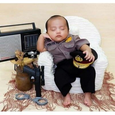 KOSTUM POLISI JUNIOR SET LENGKAP NEWBORN / BAJU POLISI ANAK LENGKAP PLUS TOPI ( READY STOK )
