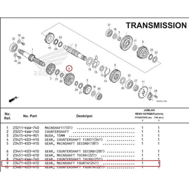 HGP 23471K03H10 GIGI MESIN 4 24T REVO F1 REVO FIT ABS REVO ABSOLUTE REVO ORIGINAL 100