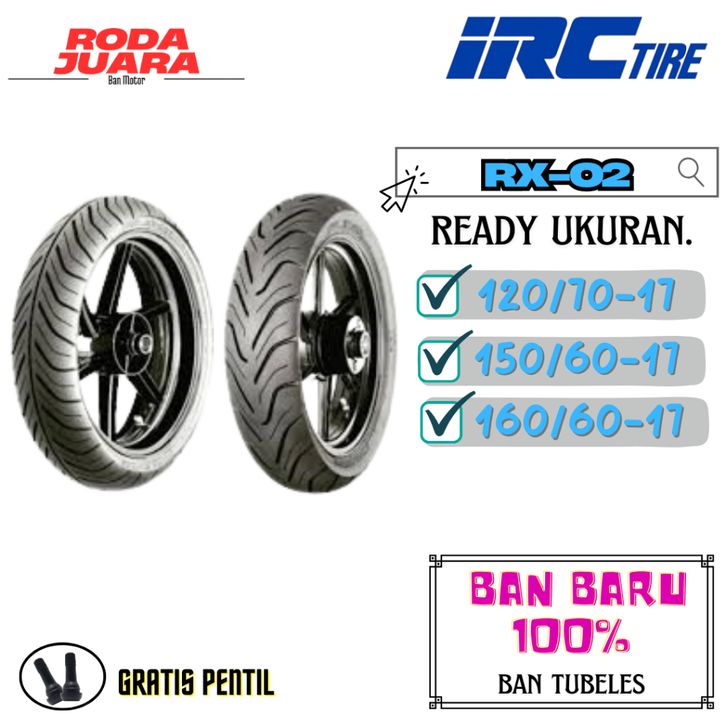 [ FREE ONGKIR ] BAN IRC RING 17 120/70 150/70 160/70 RX-02 SATUAN/SEPASANG BAN TUBELES MOTOR SPORT