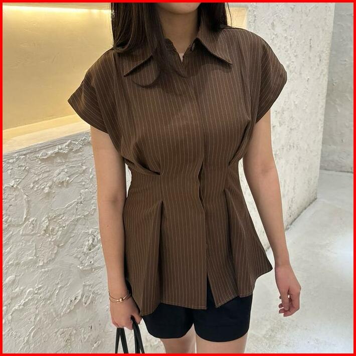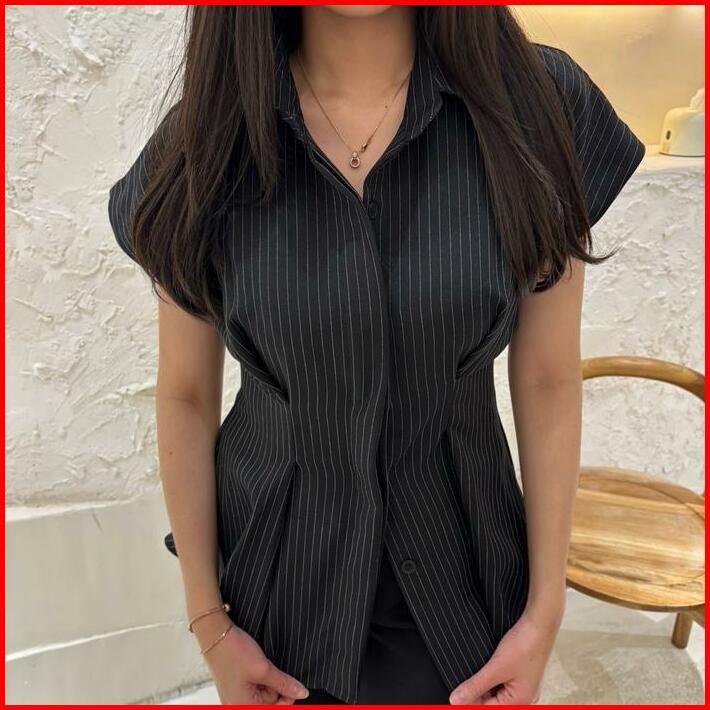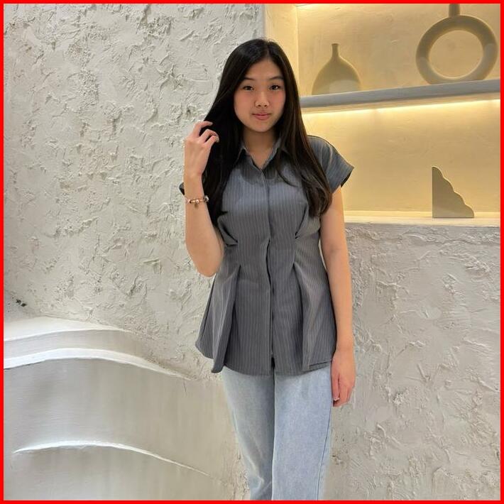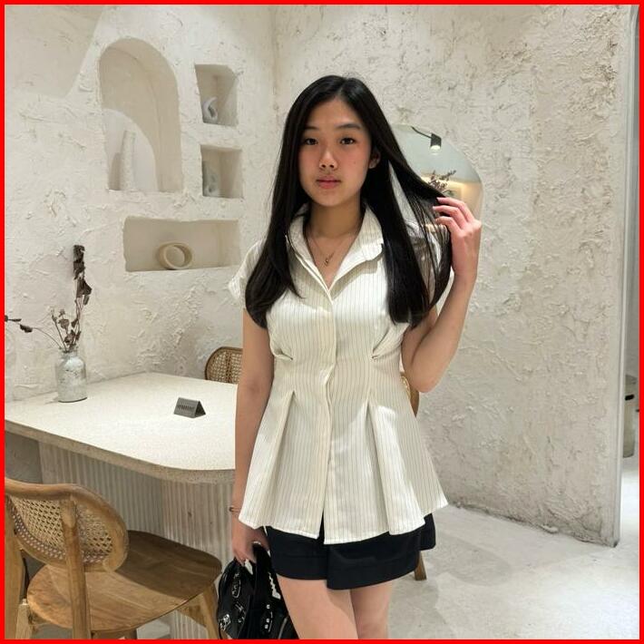 Wear.klassy Holly Stripe Fitted Shirt Semiwool Kemeja Wanita Kemeja Salur Atasan Lengan Pendek Button Fit
