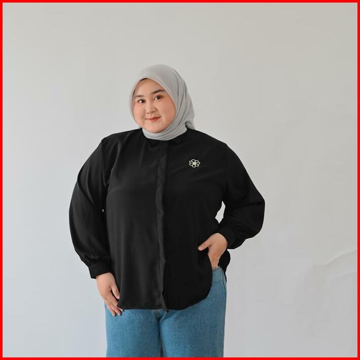 Marchemode Aqila Shirt Embroidery Kemeja Lengan Panjang Wanita Crinkle Basic Formal Oversize Baju Muslim