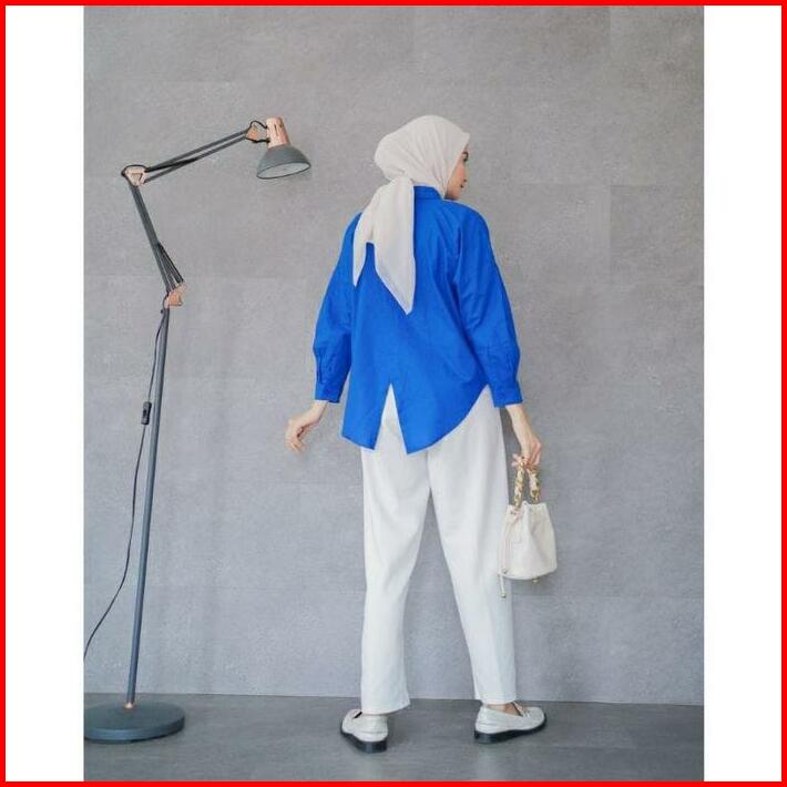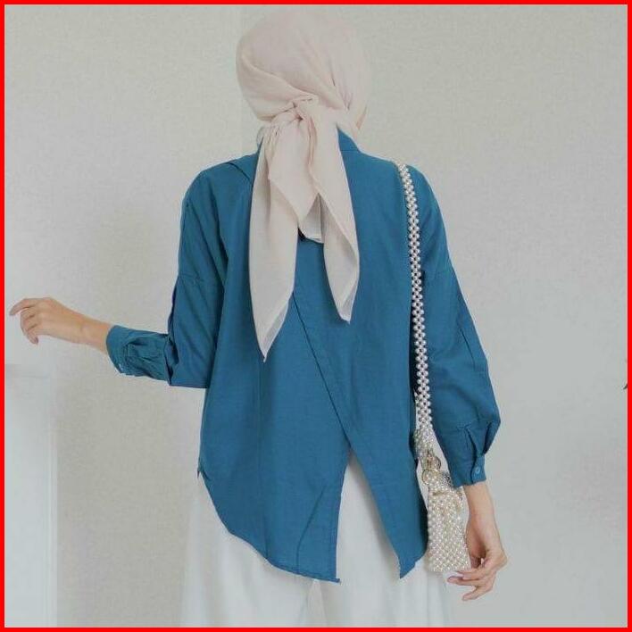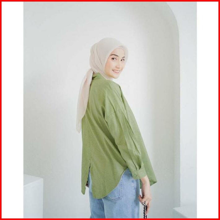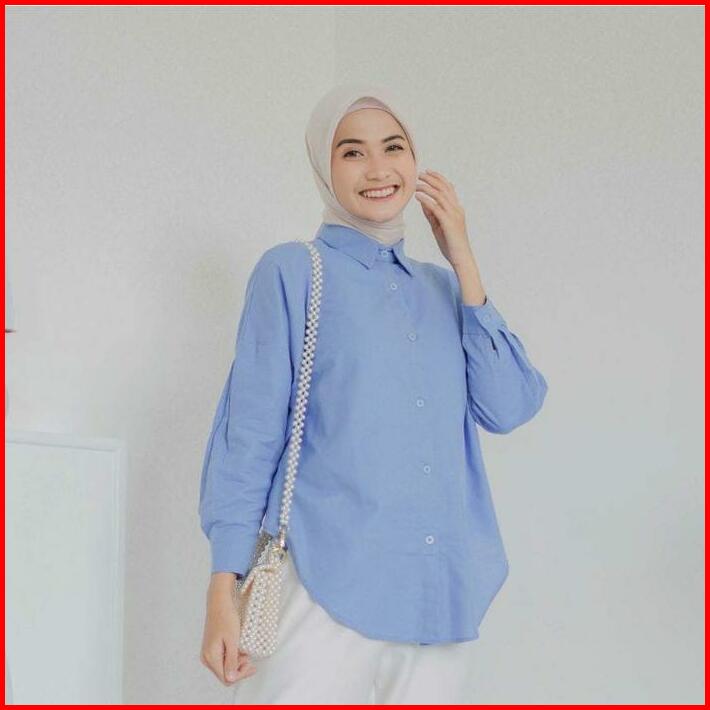 Kemeja Linen Wanita Oversize Nelka Shirt Linen Polos Premium Panjang Kancing Katun V-neck Santai